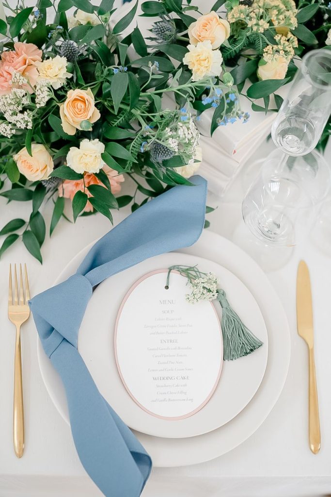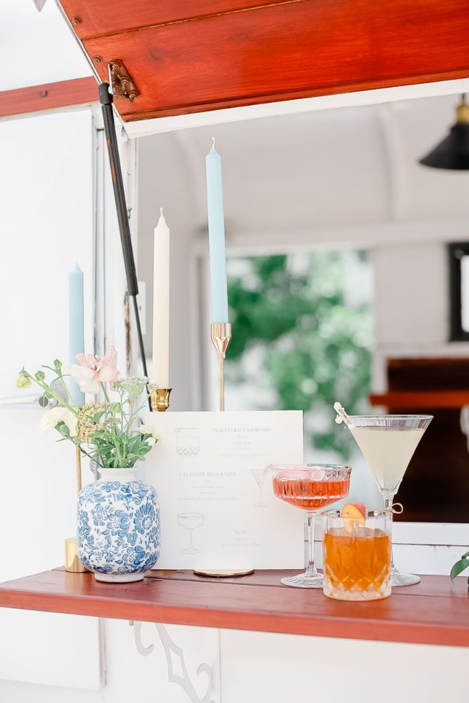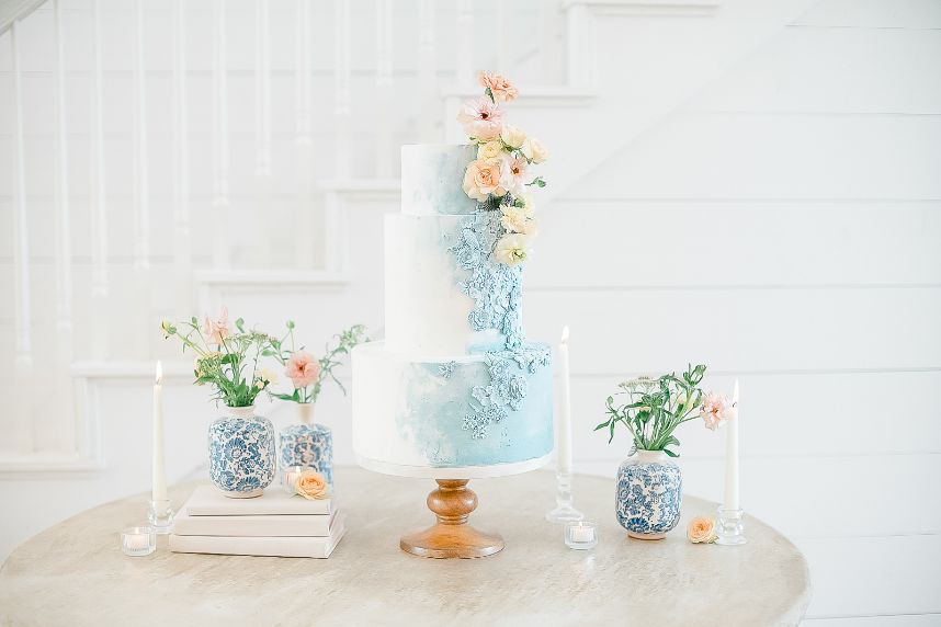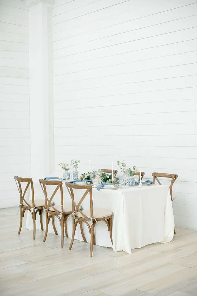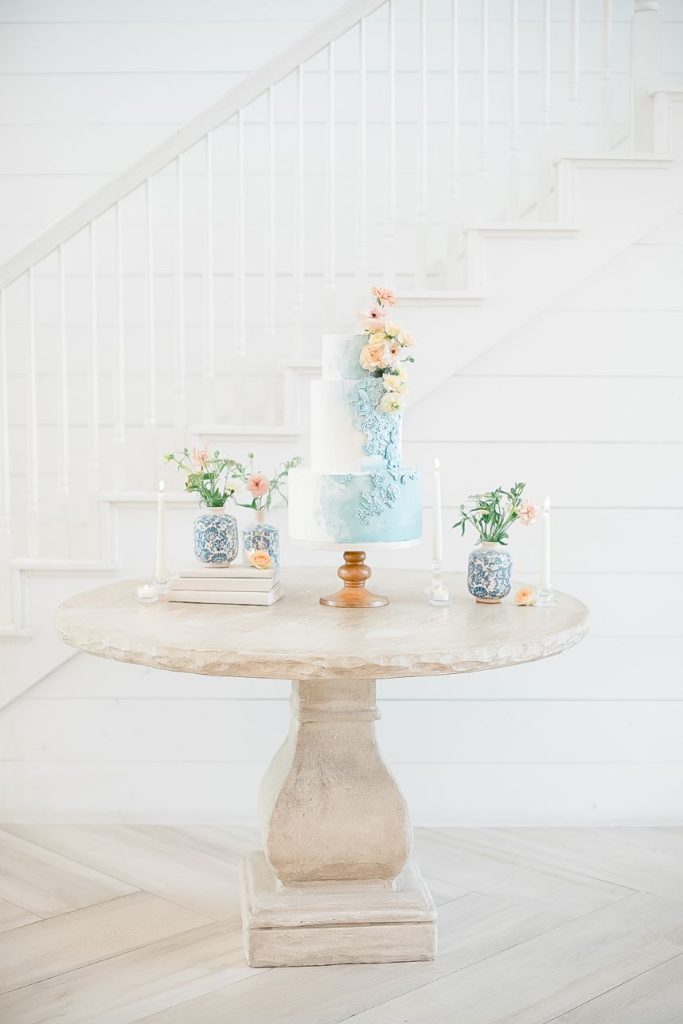 Butterfly Cakery created a three-tiered design adorned with a French blue fondant floral and topped with whimsical fresh blooms, too. Send out stationery that prefaces the pretty celebration to come like this invitation suite designed by Ladybird Paper Co. but the paperie party doesn’t stop there! Menus and signage tie everything together and create a cohesive feel throughout the space where touches of chinoiserie add southern charm into the décor style curated by naturally elegant wedding rentals from COHOST. For a little refreshment, a sip of whatever The Tipsy Tap will keep the late summer heat at bay before you say “I do!” Read on for a note from the glam team behind Lip Service Makeup as well as Ladybird Paper Co. about this vintage wedding editorial and its heartwarming, “The Notebook” inspired design fit for any debutante. Cheers!