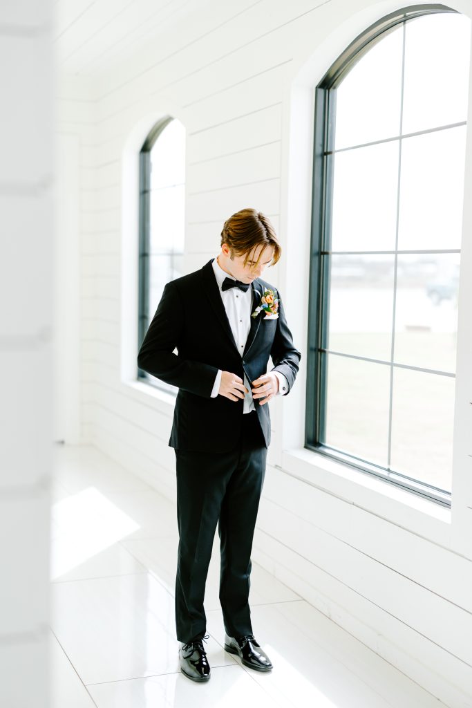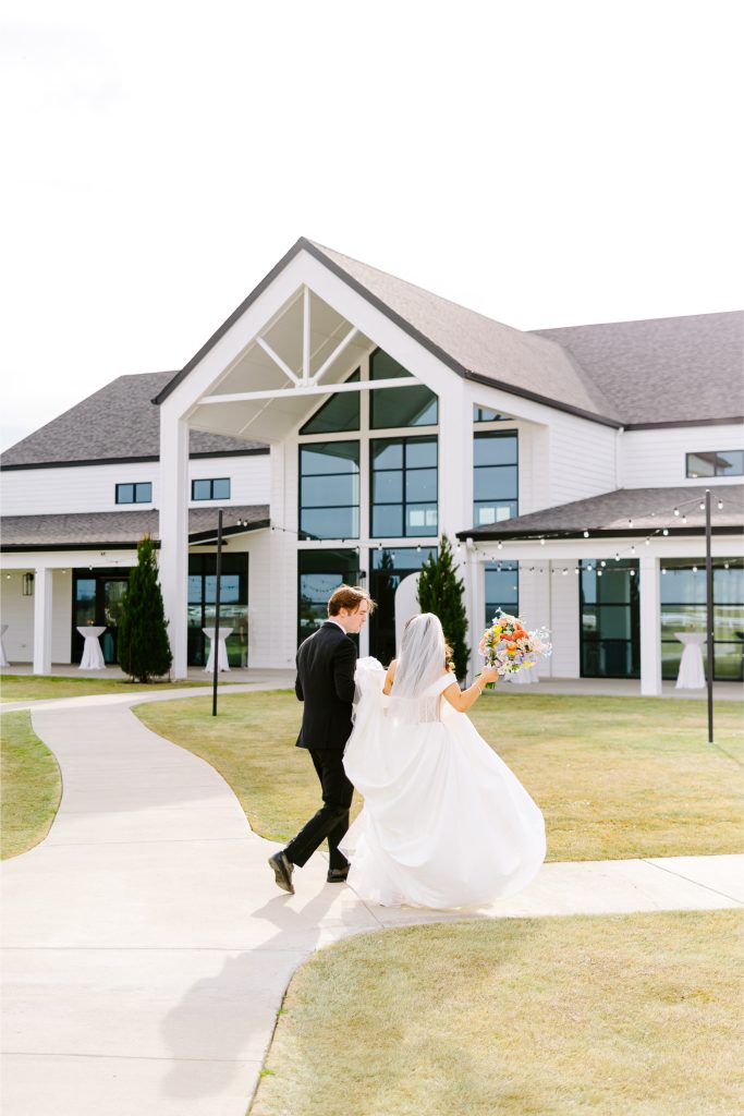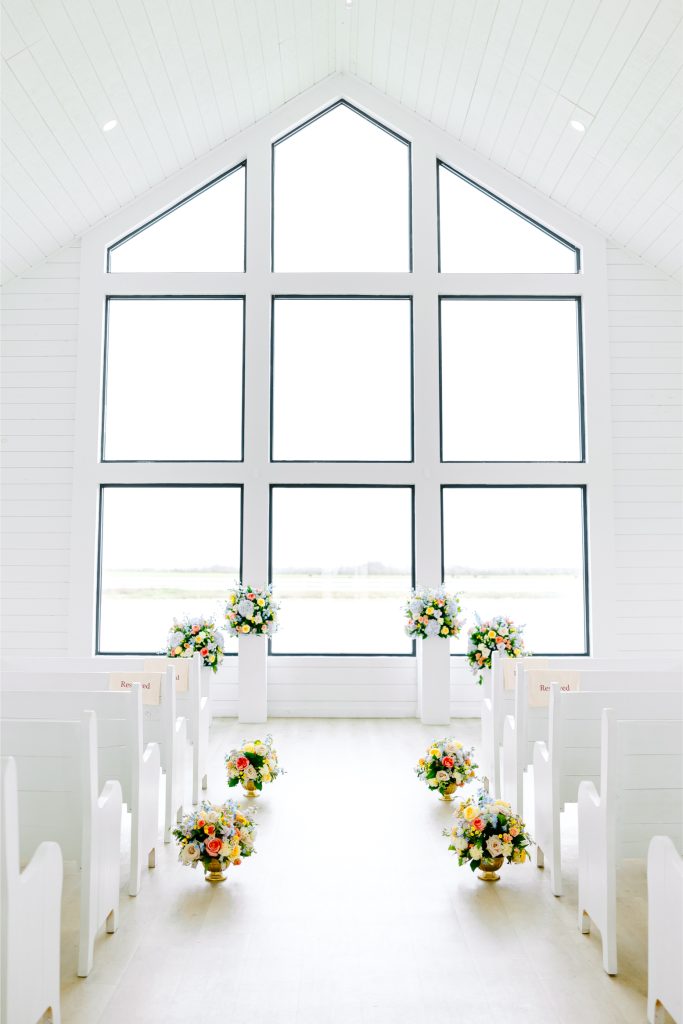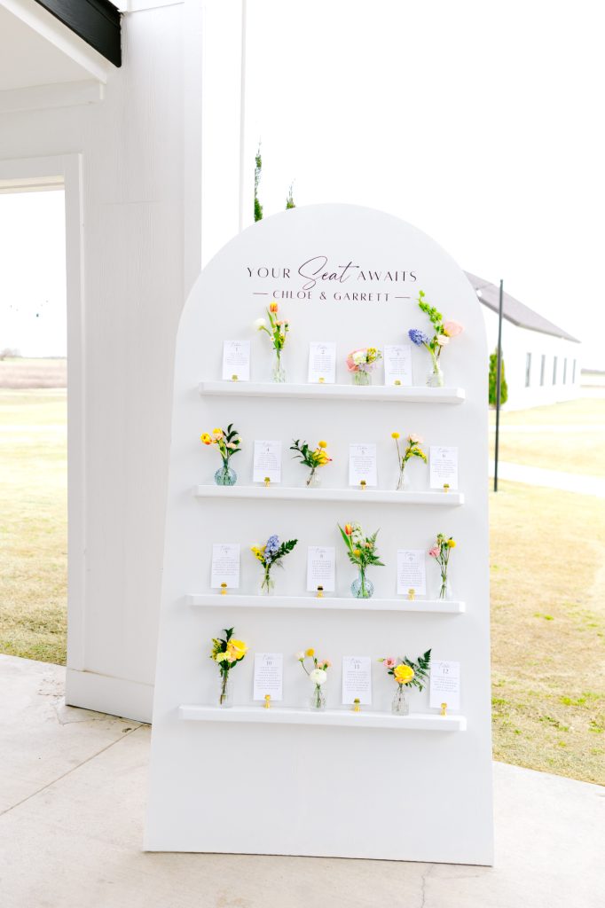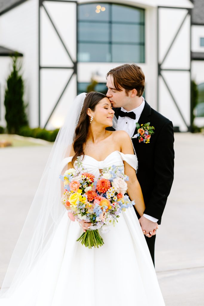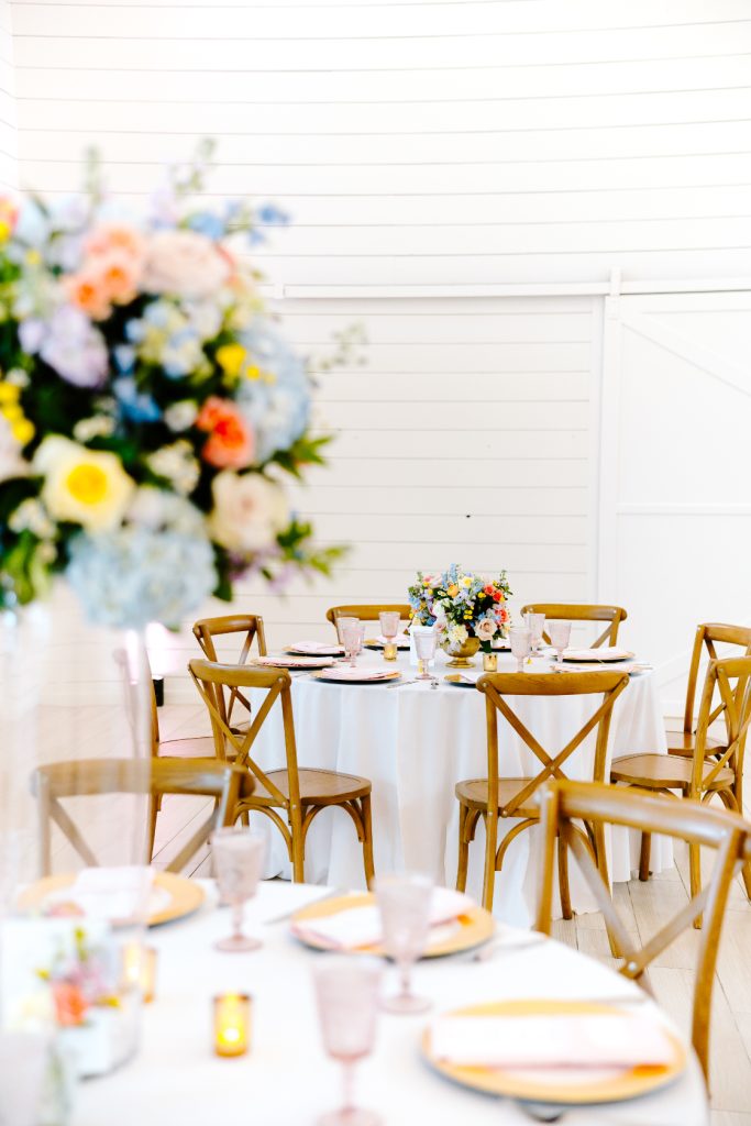The day began with a burst of color, as coral, peach, lilac, and butter-yellow blooms set the tone for a celebration that was both fresh and refined. The couple’s modern white venue provided the perfect backdrop, with its airy architecture and expansive windows creating a light-filled atmosphere that felt both inviting and romantic.