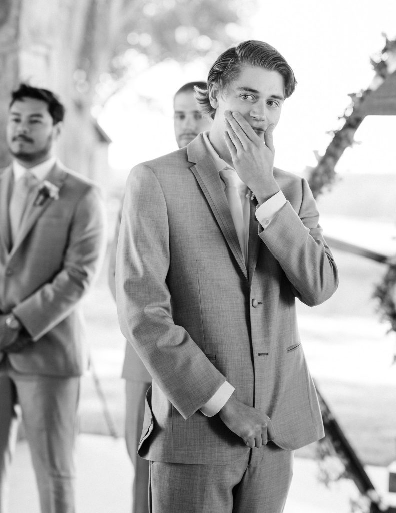 The ceremony unfolded beneath a beautifully crafted wooden arch adorned with soft florals and greenery, creating a natural yet refined backdrop. One of the most touching moments came just before the bride made her entrance—the groom’s expression said everything. As he wiped away a tear, you could feel the anticipation and emotion building, a quiet reminder of how powerful and personal these moments truly are.