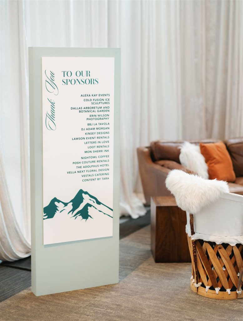 Adding a personal touch, Kinsey Designs offered a charm bar for fun personalized necklaces. Guests also took home custom luggage tags from Mon Sherri Ink, a unique and thoughtful keepsake. Throughout the event, Letters in Love’s elegant signage tied every detail together seamlessly.
