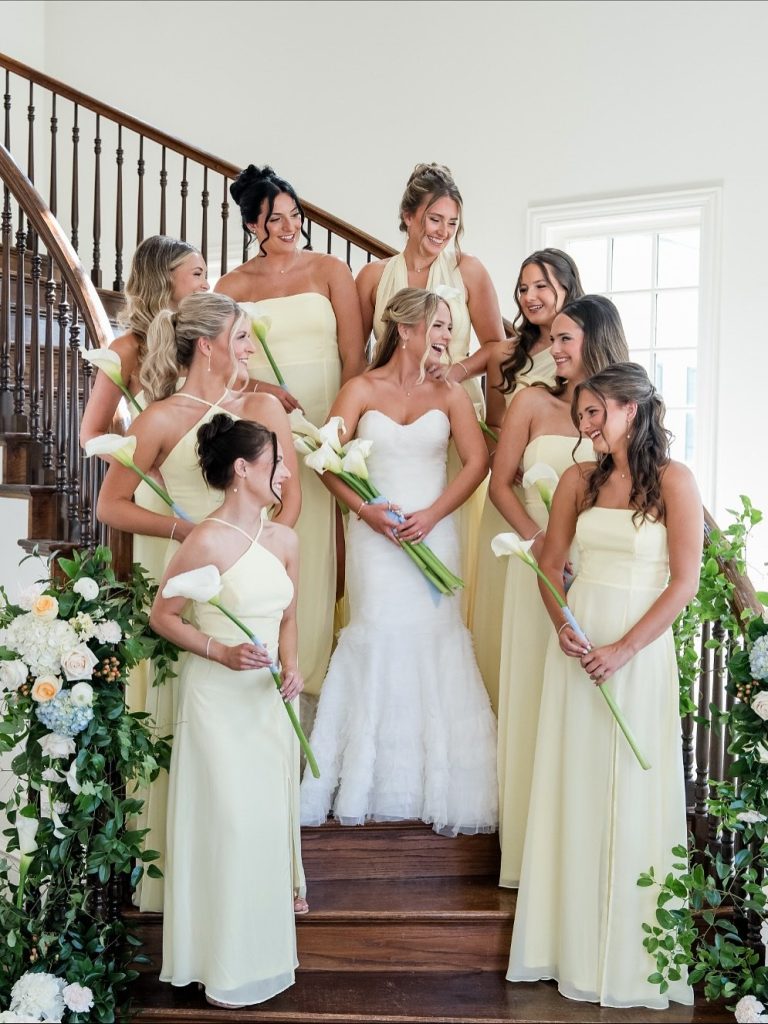 Carsyn and Cole’s elegant summer wedding blended pastel florals, soft yellow bridesmaid dresses, and timeless Southern charm for a celebration full of joy and style. Their day began with thoughtful details—from powder-blue bridal accessories to classic calla lily bouquets—setting the tone for a romantic, airy aesthetic. The ceremony featured lush garden-inspired arrangements and natural light pouring through the windows, creating the dreamiest backdrop for their vows. Guests were welcomed into a reception filled with towering hydrangea centerpieces, candlelit tables, and a beautifully detailed tiered cake. Every moment, from golden-hour portraits on the lawn to their sweet first dance, showcased the effortless love these two share.