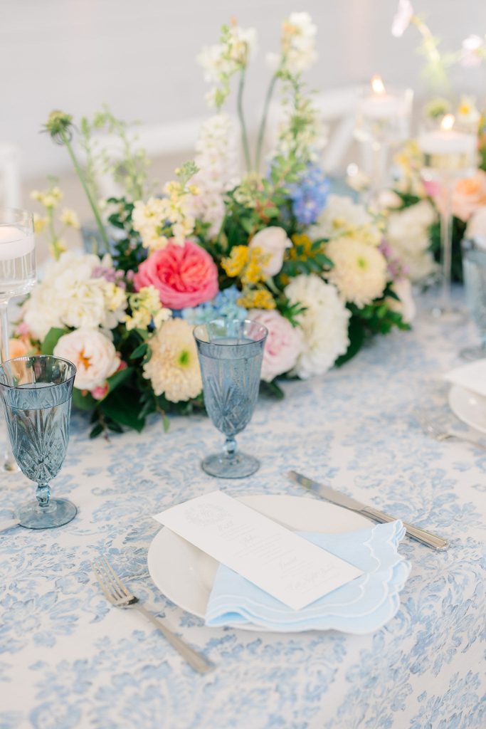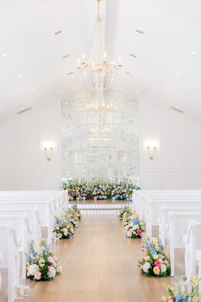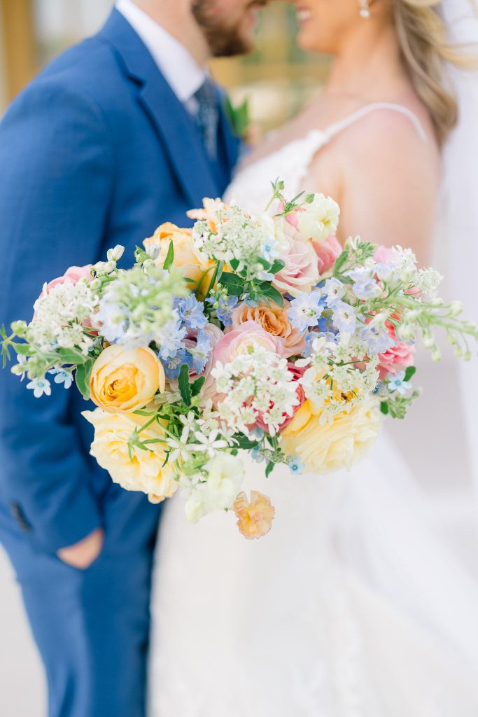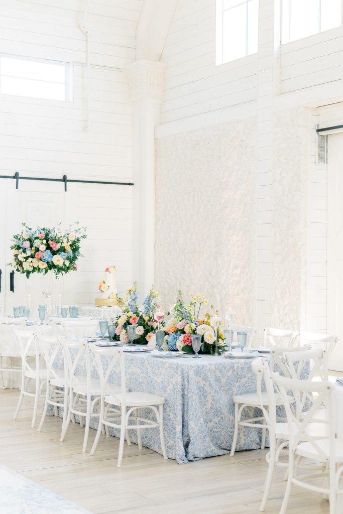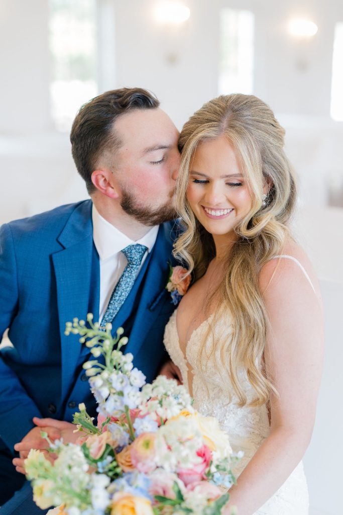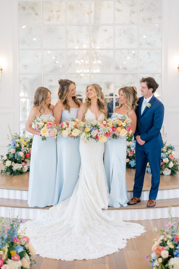 This summer wedding at The Nest at Ruth Farms was a breathtaking blend of soft pastels, lush florals, and timeless Southern elegance. The chapel’s bright white interior made the perfect canvas for abundant blooms in shades of peach, blush, blue, and buttery yellow. The bride and groom shared the sweetest portraits among colorful garden-inspired arrangements, while their reception tables featured delicate patterned linens and airy centerpieces that tied the entire design together. Every detail — from the textured cake display to coordinated bridesmaid looks — created a joyful, romantic celebration filled with heartfelt moments and effortless beauty.
