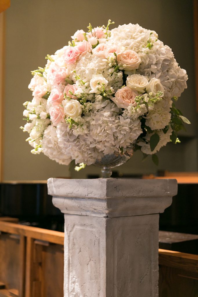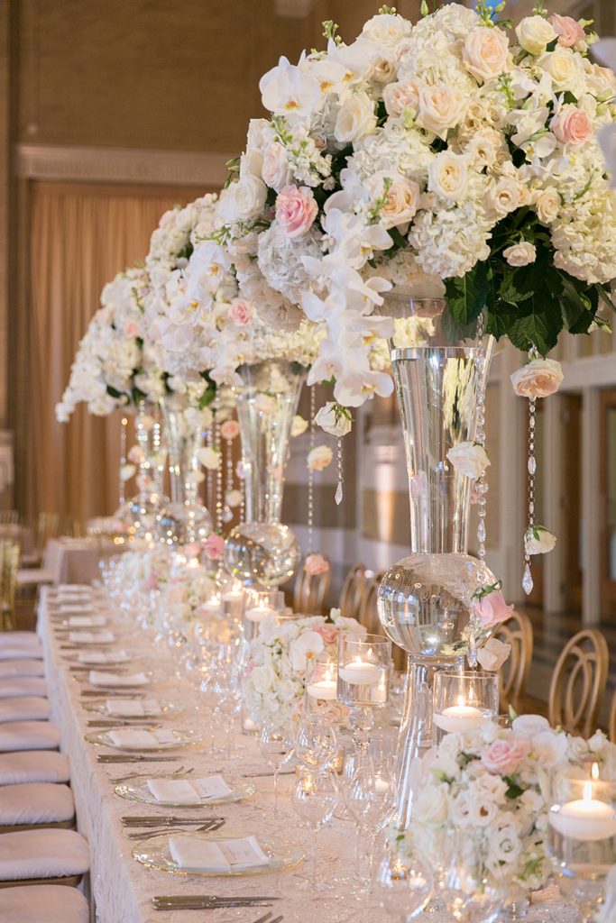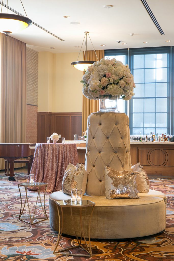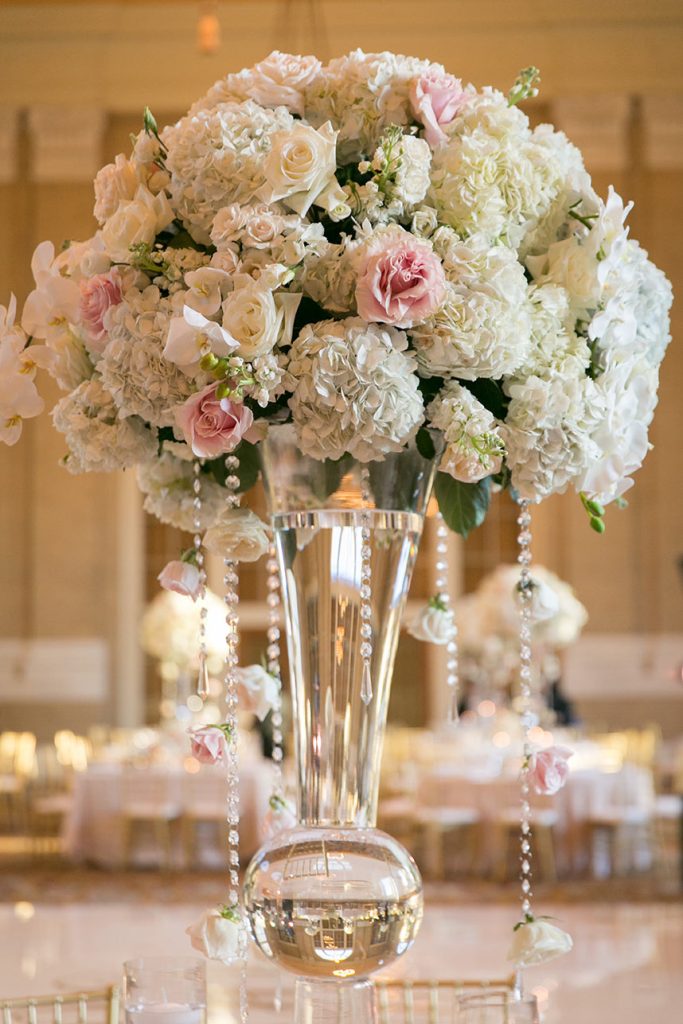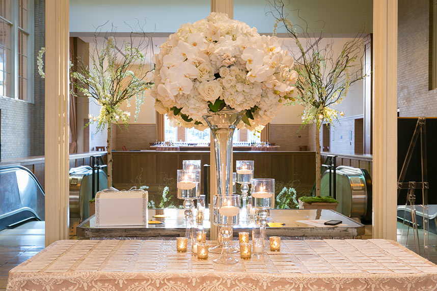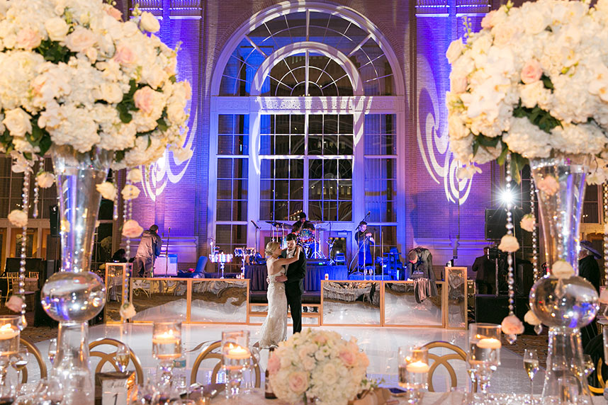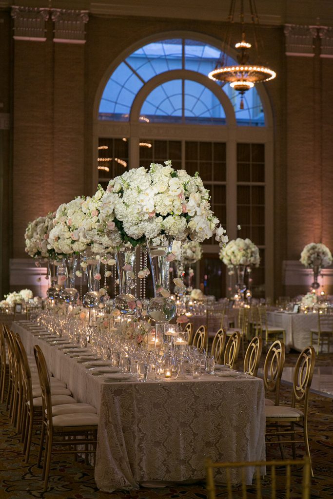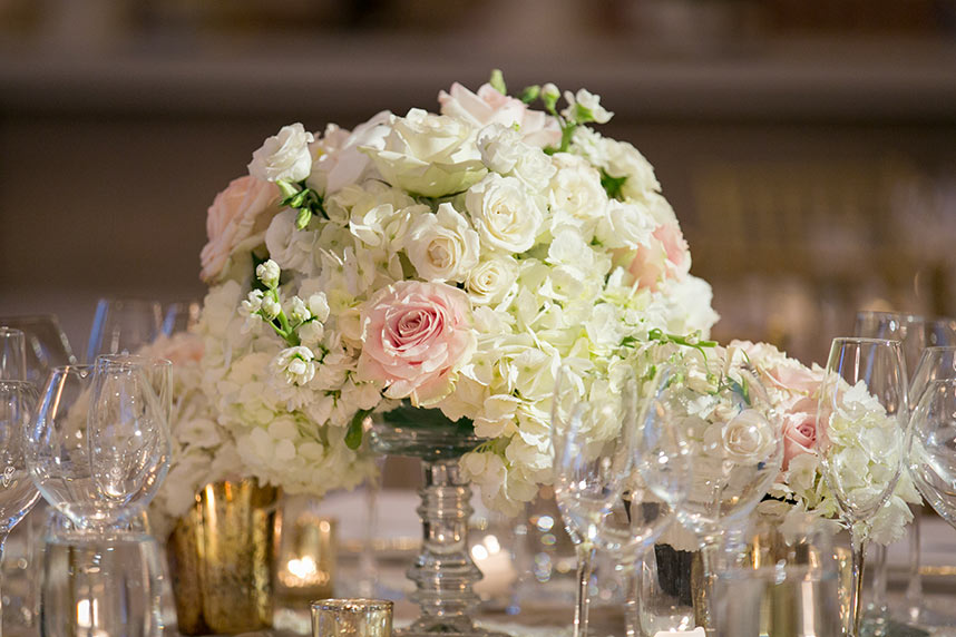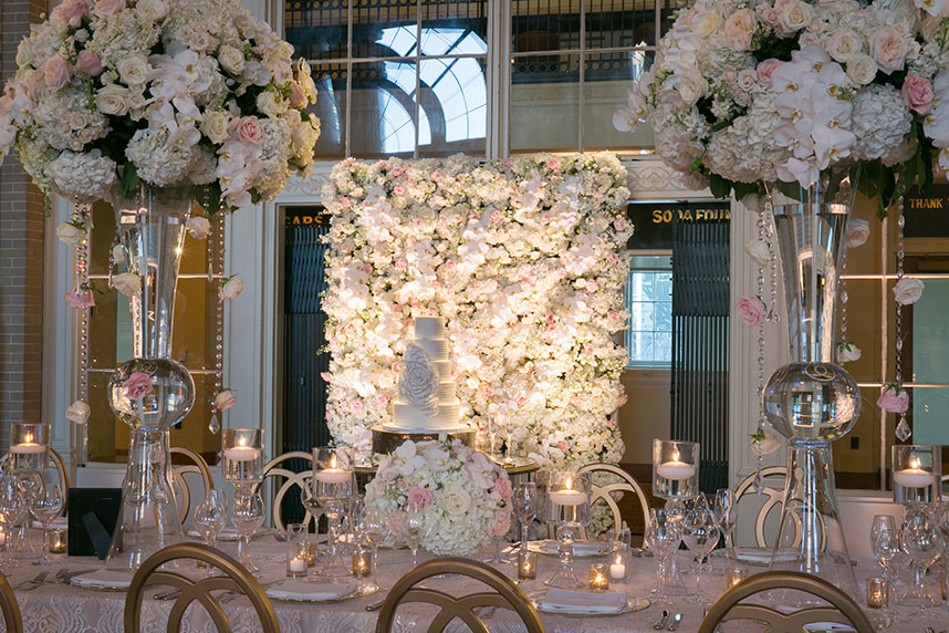 HUES SHE USED: Amanda wanted her wedding to be traditional and elegant. To bring this vision to life, she used lighter hues to brighten up the reception space. She also selected white and pink blooms to bring a little color the room.
