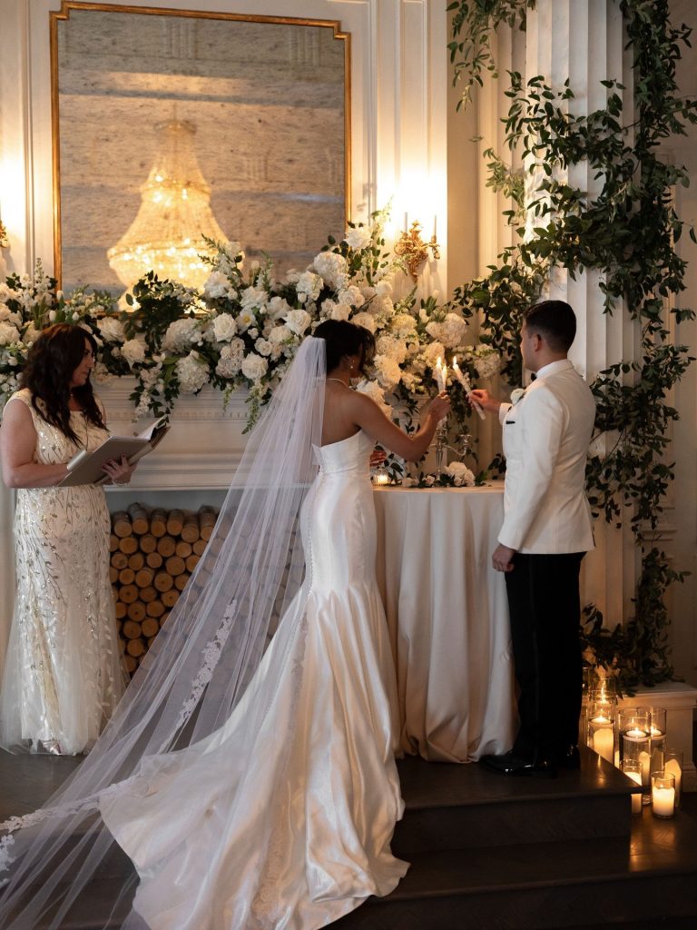 This elegant wedding day was a masterclass in intentional design, where every detail reflected the couple’s story and sense of hospitality. From a candlelit ceremony framed by lush white florals and greenery to a refined reception layered with texture, romance, and warm lighting, the day felt both elevated and deeply personal. Guests were immersed in a true experience—from carefully designed stationery and a statement seating display to a reception that balanced timeless elegance with high-energy celebration. Each moment flowed seamlessly, creating a wedding that felt intimate, stylish, and unforgettable.