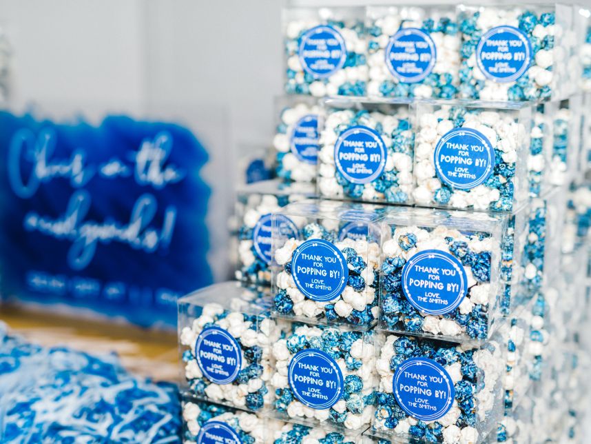 From the bride: “A very special part of our reception was a surprise performance. I am a Dallas Cowboys Cheerleader, and we have a fun tradition on our team that we do at weddings. At the home games, we do a signature pregame dance to ‘Thunderstruck’ by ACDC. Our tradition is to do that signature dance at our weddings! My teammates and I hit the dance floor with our silver pom-poms and the guests went nuts! I love this team tradition; it was very special to get to make that memory with my amazing teammates.”