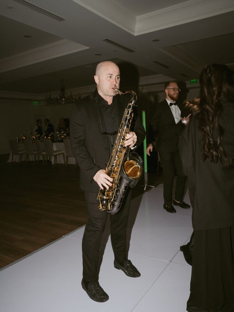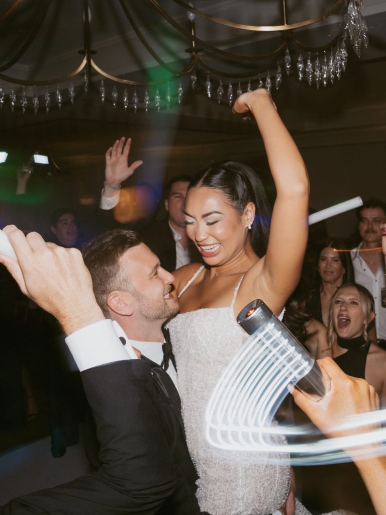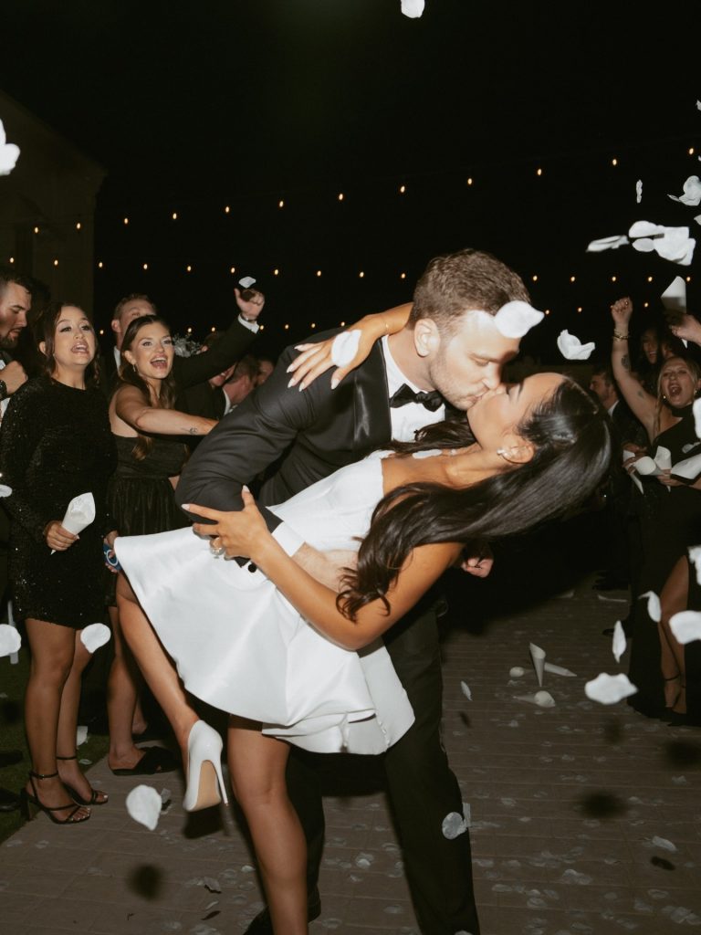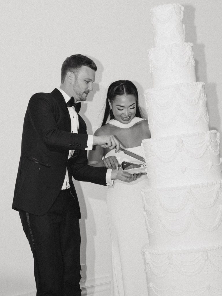 This stunning black and white wedding blended modern sophistication with timeless romance, creating a celebration full of elevated details and unforgettable moments. From the candlelit reception with glowing gold accents to the lush white floral installations lining the ceremony aisle, every element felt intentional and refined. Nikki stunned in a sleek, fashion-forward gown while she and Steven shared both joyful and intimate moments, from a grand cake cutting to a packed dance floor celebration. Thoughtfully designed details like a chic seating chart display and classic tablescapes tied the entire day together. This elegant wedding is the perfect inspiration for couples dreaming of a clean, modern aesthetic with a touch of luxury.