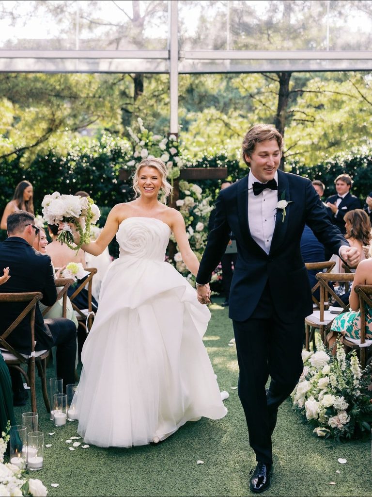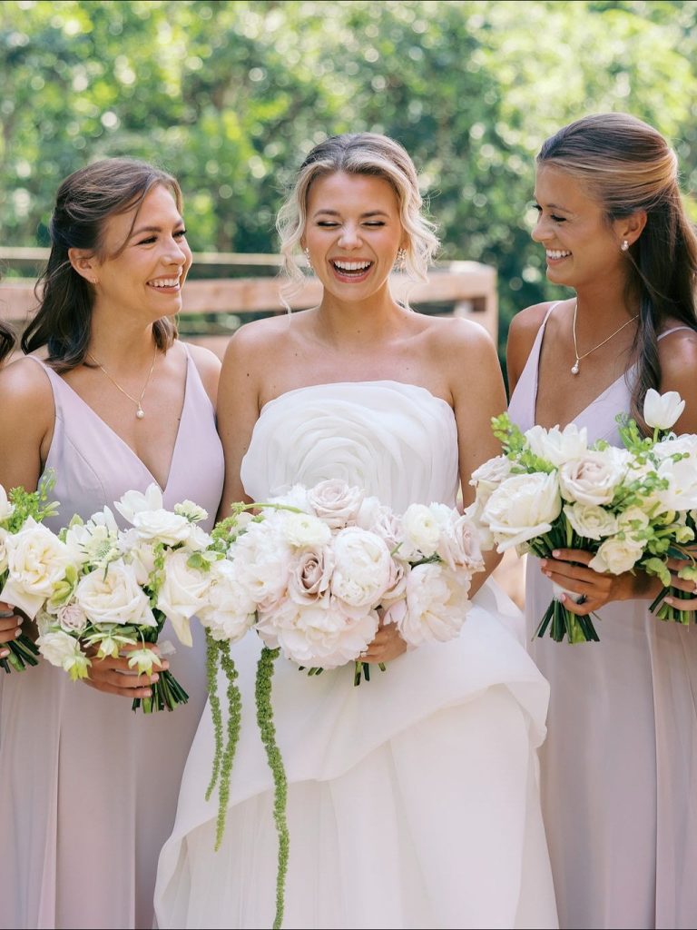 This chic outdoor garden wedding celebrated timeless elegance with a romantic, Southern-inspired twist. The couple exchanged vows surrounded by lush greenery, wooden cross-back chairs, and soft floral accents, creating the dreamiest ceremony backdrop. Bridesmaids in neutral tones paired perfectly with the bride’s classic white bouquet, while farm-fresh bites and candlelit tables brought warmth to the reception. Thoughtful details—from woven heels to beautifully textured paper goods—added a natural sophistication. Every moment felt intimate, stylish, and full of heartfelt joy.