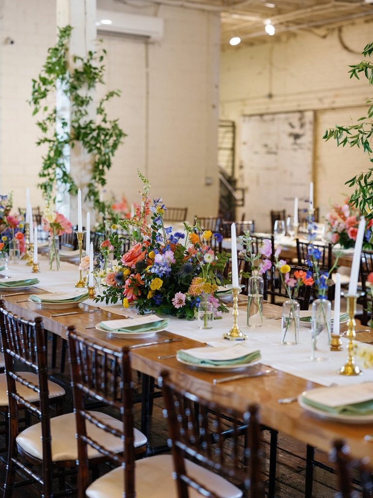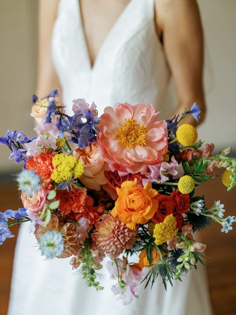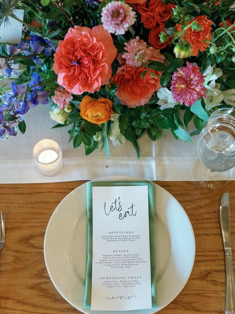 This vibrant wedding was a joyful blend of bold color, modern romance, and effortless celebration. Lush, statement florals in coral, peach, blue, and golden tones brought a fresh, garden-inspired feel to every moment—from the ceremony florals to the thoughtfully styled reception tables. The couple’s relaxed, love-filled energy carried through the day, paired with meaningful details and a lively reception atmosphere. With playful color palettes, organic textures, and a warm, welcoming design, this wedding is perfect inspiration for couples dreaming of a modern, colorful wedding that still feels timeless and refined.