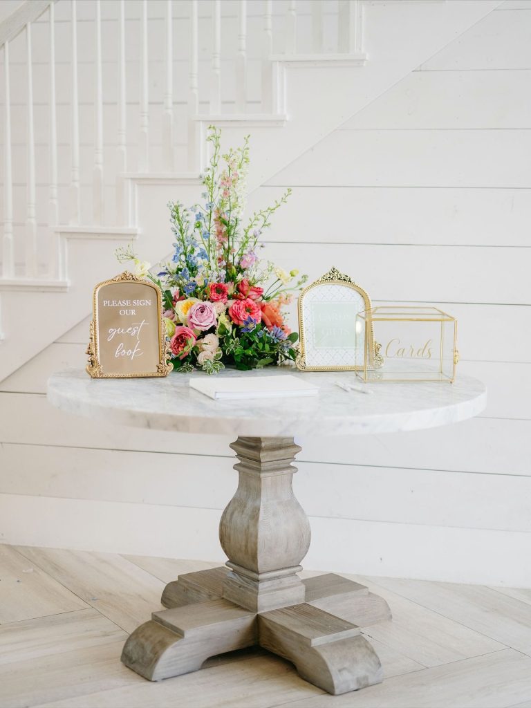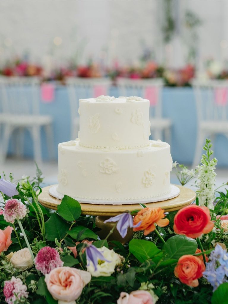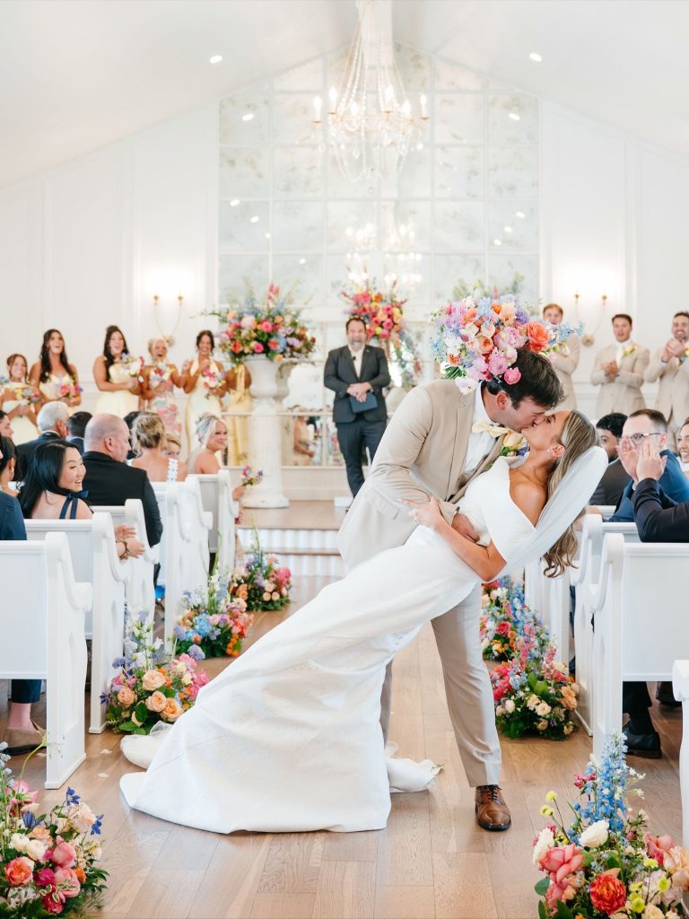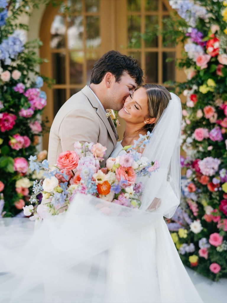 This dreamy celebration felt like stepping into a pastel garden, overflowing with vibrant florals, soft textures, and joyful details. The couple exchanged vows in front of a lush floral arch, then continued the festivities beneath airy spaces filled with colorful arrangements. Guests dined at long tables dressed in pinks and blues, creating an elegant yet playful setting. Every moment was brimming with warmth — from sweet newlywed portraits to a lively reception filled with love. A stunning day celebrating romance, color, and effortless charm.