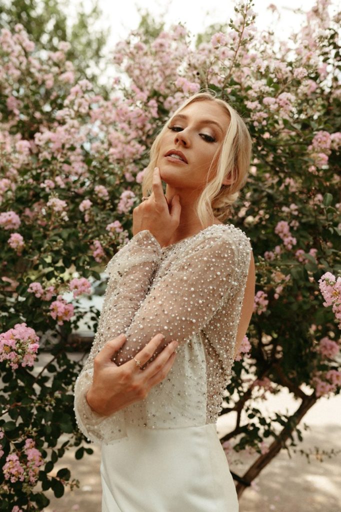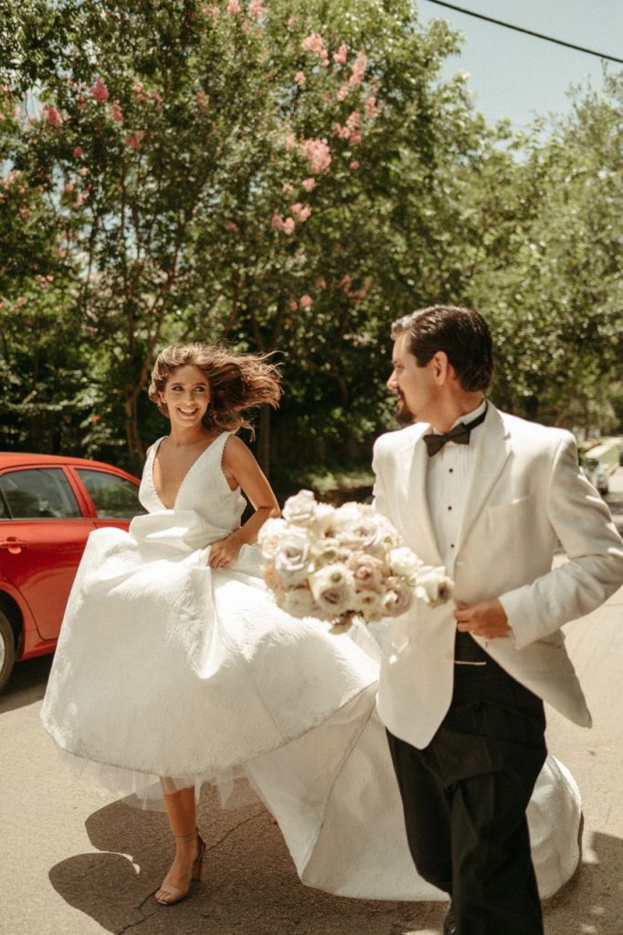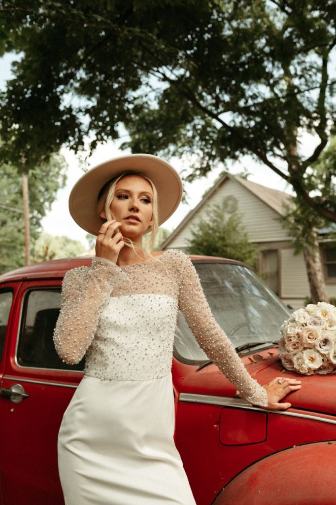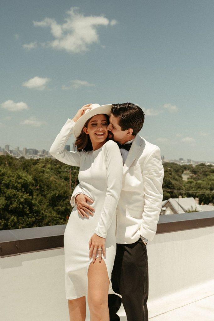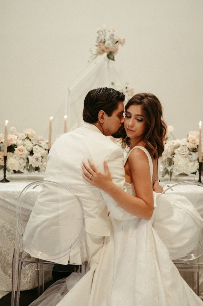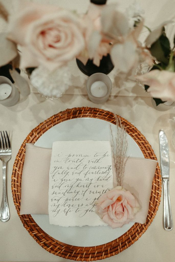 Blending two distinct wedding vibes can make some serious waves and this cityside wedding inspiration captured by the talented Vanessa Martin Photo Co. in dramatic indoor and outdoor weddingscapes totally brings a sense of chic elegance to the ever-trending cool girl style. Sleek signage and custom décor designed by Satin Pavement set the mood of the shoot while delicate shades of terracotta, blush and champagne contrast against mod black accents and gilded flatware creates a formal reception dining space abundant with feminine florals. Our brides model multiple looks that were complemented by changing settings and both gorgeous gals were styled by artists at Tease to Please Hair and Makeup – one with a low bun moment, the other with romantic waves, and each with dreamy soft glam makeup. Featuring two stunning wedding cake designs and beautiful brigadeiros to go around, sweets were in no short supply throughout this cityside wedding inspiration. See all the stylish scenes unfold down below. Cheers!