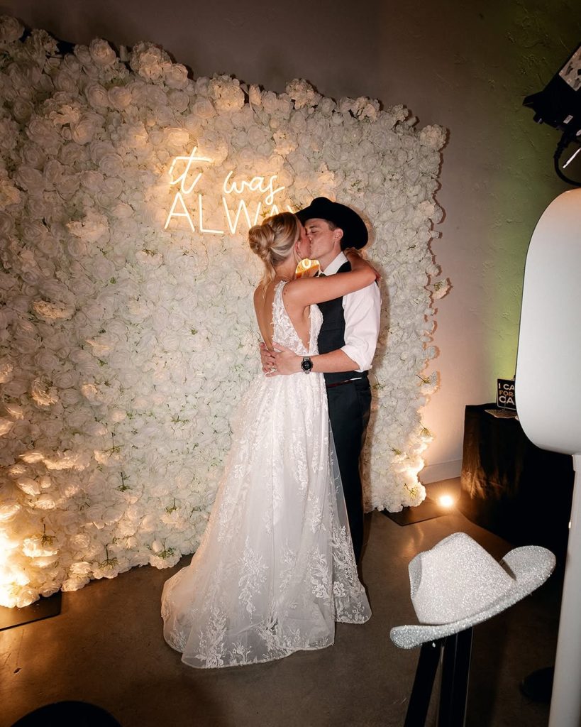 Most photo booths come stocked with a curated selection of props, from oversized sunglasses and playful accessories to vintage-inspired hats and signs. While these classics are always a hit, adding custom props is a great way to make the experience feel more personal. Consider incorporating custom signs featuring your wedding hashtag, meaningful phrases, or illustrated cutouts of you and your partner for a photo op that feels uniquely you.