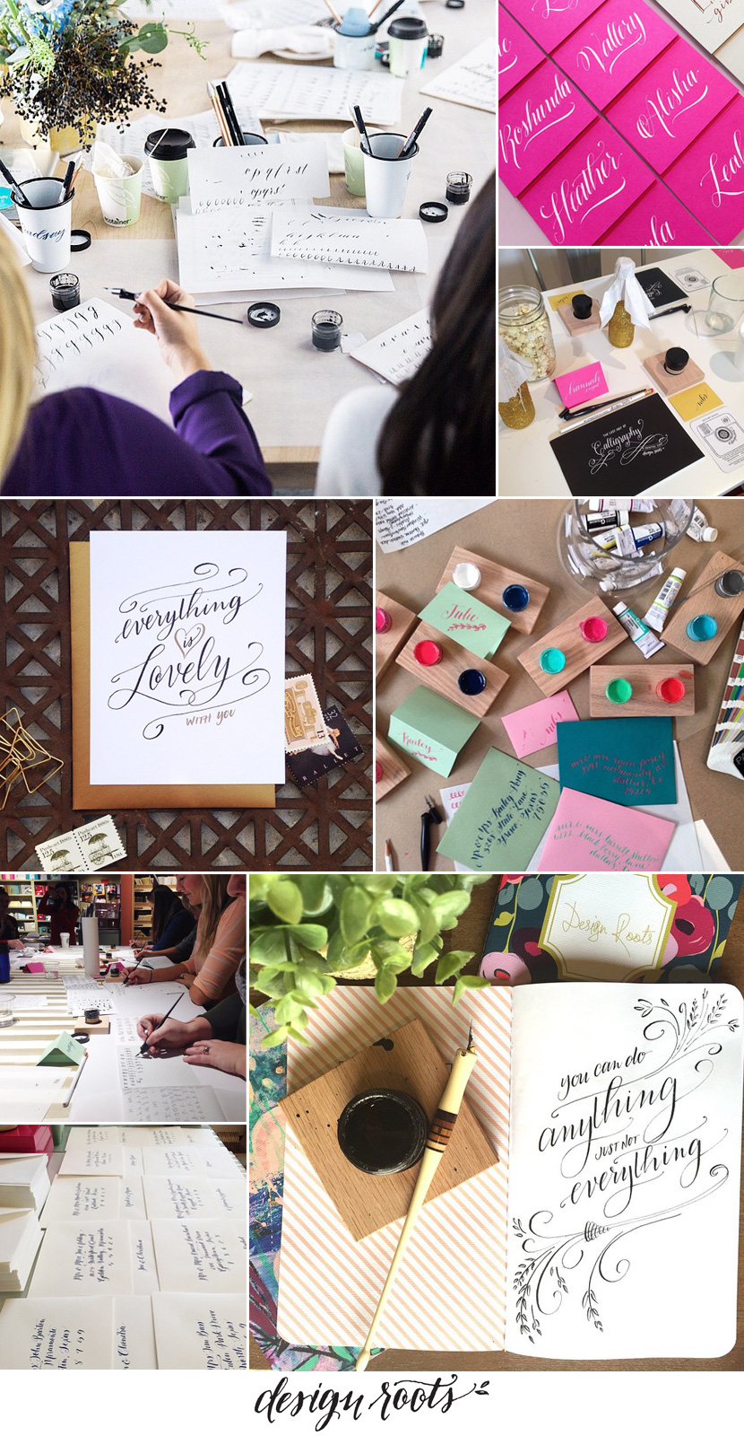 One of our favorite North Texas calligraphers, Design Roots, just announced her upcoming calligraphy workshop dates! If you’ve been dying to learn the art of calligraphy like us, be sure to sign up for one of her spring classes. You’ll get all the supplies you need with the know how to address envelopes, create your own prints and flourish like the best! You can see all the dates, locations and where to register here. They fill up quick so act fast!