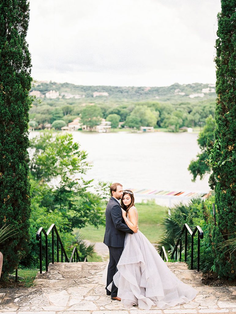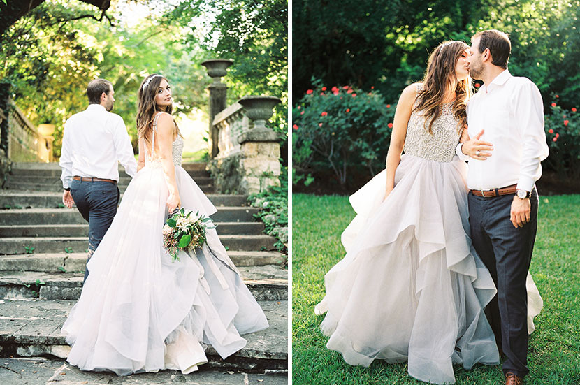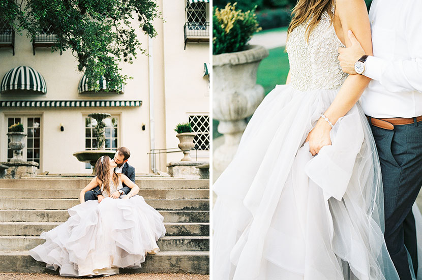 Talk about a dreamy engagement shoot! Texas couple Scarlet and Michael look oh-so-lovely in every single photo taken by the talented Jeff Brummett Visuals. Everything is perfection in this royally styled engagement shoot. From the beautiful headpiece to the immaculate Hayley Paige dress, this bride-to-be look is absolutely stunning – topped off with a picture perfect bouquet created. We are beyond excited for Scarlet and Michael’s big day coming up this month. Cheers!