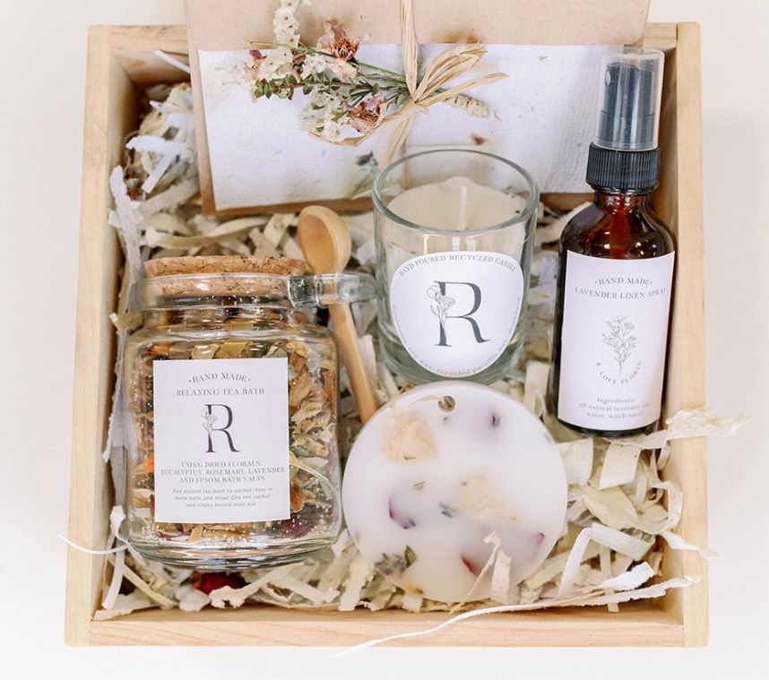 Calling all cottagecore, boho brides and flower childs tying the knot! We’re all about wedding sustainability and eco-friendly gift ideas are just one small way to reduce the impact your big day will have on the planet. The challenges of COVID-19 brought out ingenuity in Raquel and Rebecca of R. Love Floral, whose blooming idea is a total game-changer! Earthy Girl Gifts by R. Love Floral is a line of self-care products and presents made from reimagined, recycled and repurposed natural materials. We’d love to know more about these hand-crafted creations, so we asked these floral pros for the inside scoop. They explain Earthy Girl Gifts, the creation process, plus where the concept came from, down below. Read on!