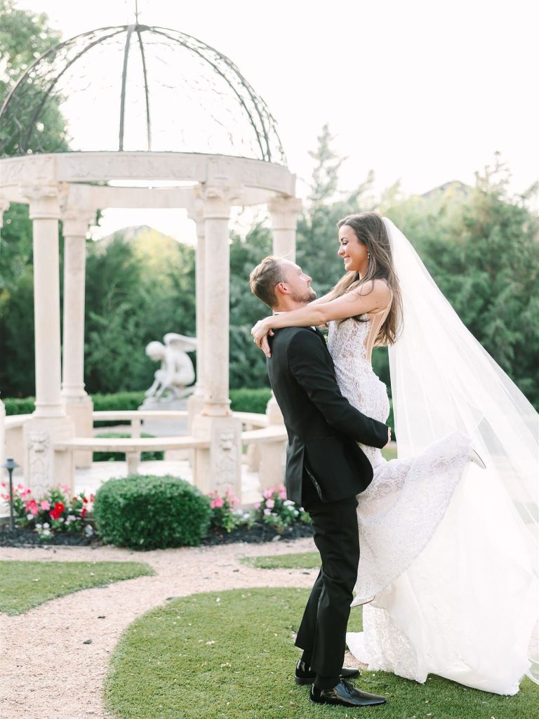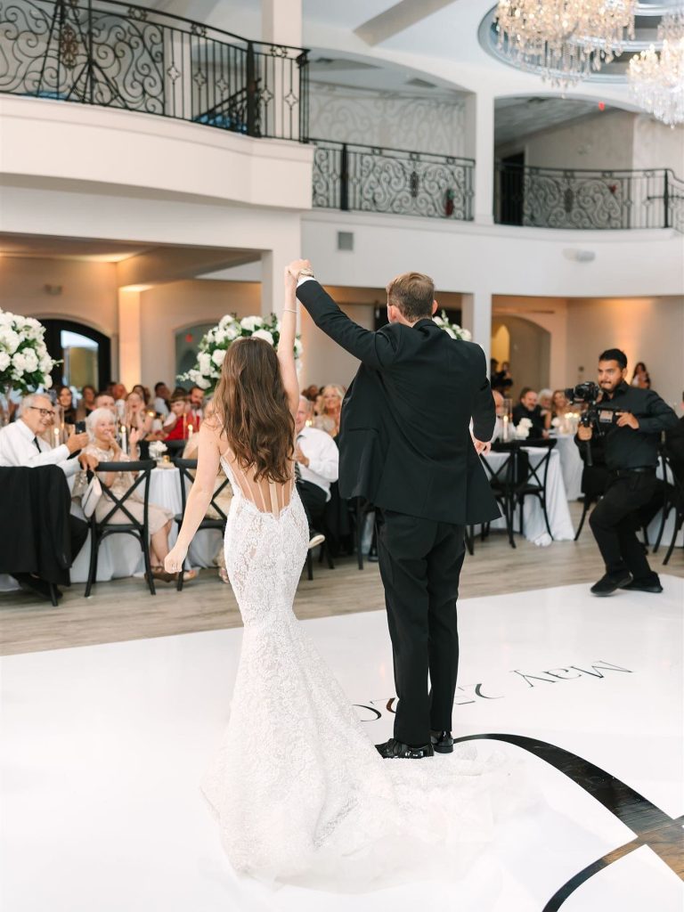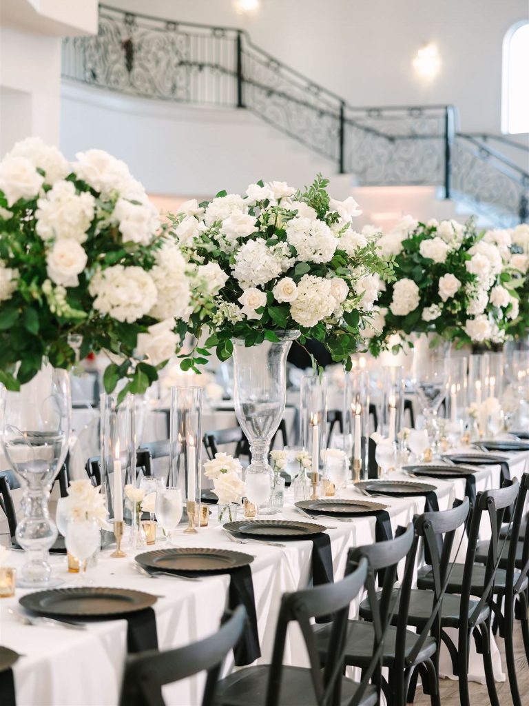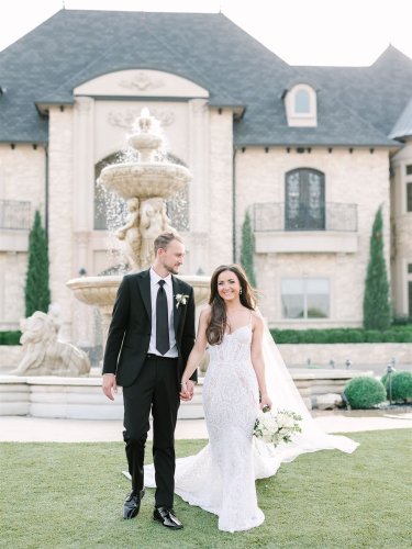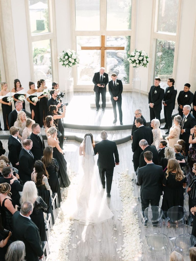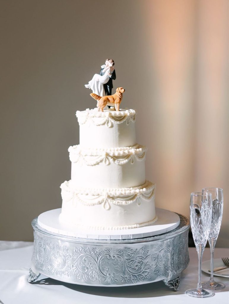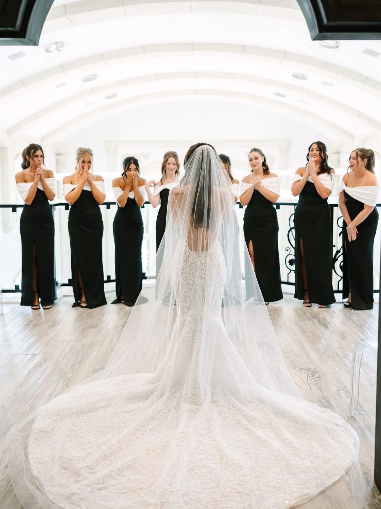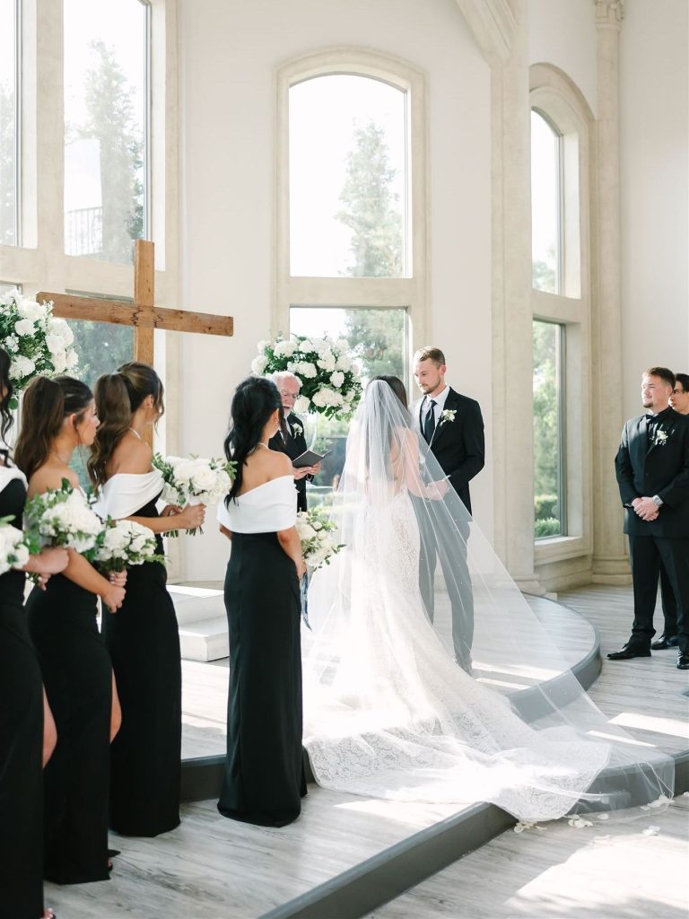 Keely and Parker’s wedding day was a stunning showcase of modern elegance and heartfelt moments. With a chic black and white palette, the celebration featured sophisticated bridesmaid looks, lush ivory florals, and thoughtful details that made every guest feel special. The couple said “I do” in a sunlit chapel before dancing the night away surrounded by family and friends. A vintage-inspired cake topper featuring their golden retriever added a personal touch to the reception. Every element was beautifully curated for a day that felt timeless and uniquely theirs.