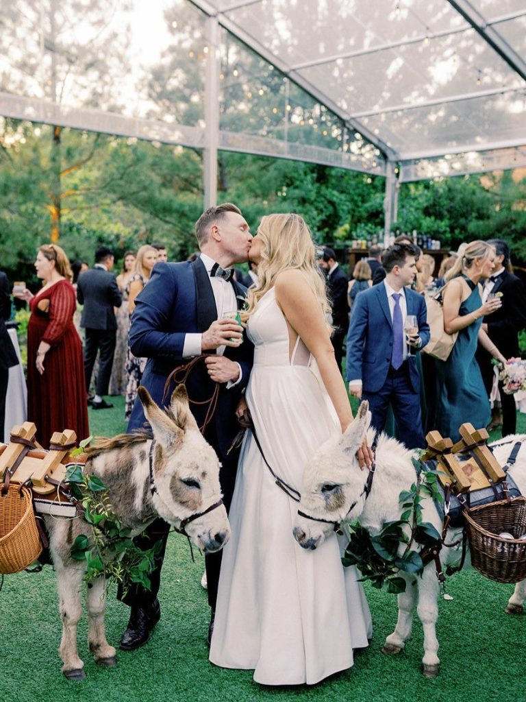 This breathtaking Texas wedding was a celebration of timeless romance, where every detail reflected the couple’s unique love story. The reception featured stunning florals in vibrant, fresh hues that added warmth and charm to the venue’s rustic elegance. Guests enjoyed craft cocktails at a beautifully styled outdoor bar and were entertained all night long by the incredible Sound Society Band, whose live performances kept the dance floor packed. From sweet moments with adorable beverage burros to a grand church ceremony, this wedding was truly unforgettable. It perfectly blended modern sophistication with classic Southern flair, creating an extraordinary experience for everyone in attendance.