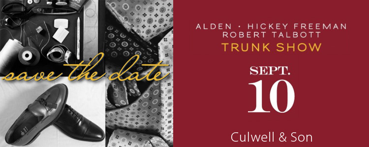 Stop by Culwell & Son this Saturday, September 10 from 10 am to 5 pm and browse the fall collections of their finest American vendors. Receive 15% off all Hickey Freeman & Talbott orders*. Representatives will be on hand to answer questions! *All in-stock merchandise regular price.