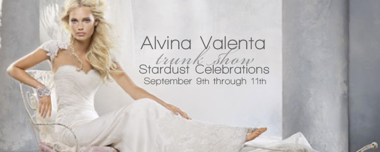 Alvina Valenta bridal gowns are known for their timeless elegance, sophistication and most especially their attention to detail. View these gorgeous gowns during the Alvina Valenta trunk show at Stardust Celebrations September 9-11.