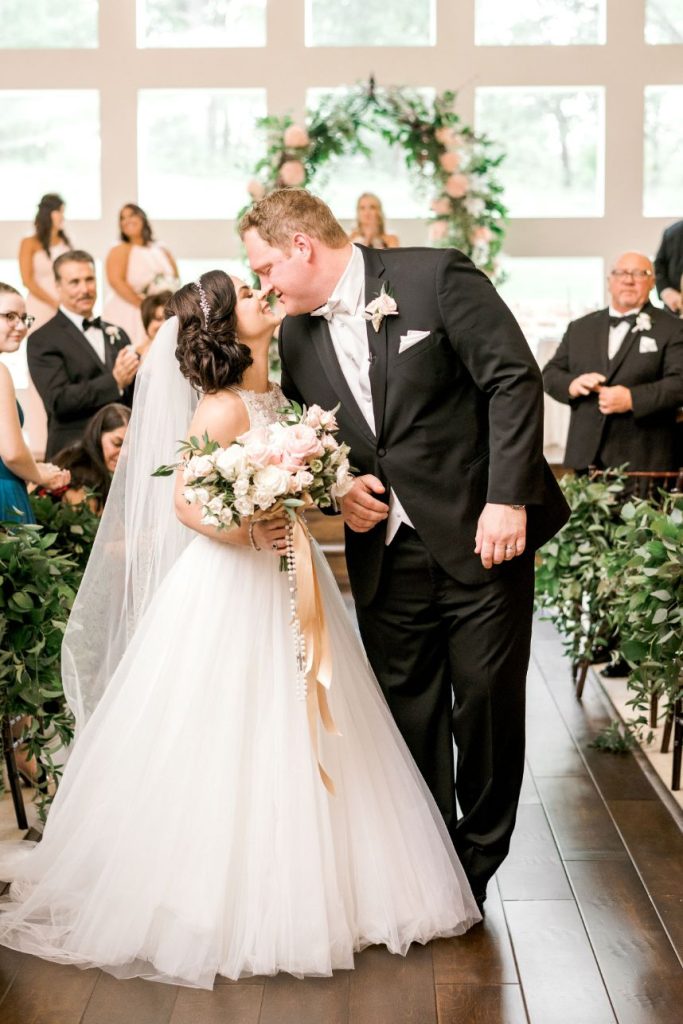 From the bride: “Blake and I met in 2013 when he started working for my company. We became fast friends. In fact, we became so close that our other colleagues used to joke about how we’d end up getting married one day. We remained friends for years until the summer of 2016. Blake and I went out on a Sunday to grab a couple drinks. As we sat and talked, out waitress engaged us in conversation. She asked us how long we had been a couple. This was a typical thought process for a lot of strangers who saw us together. I responded with my typical, ‘No, we’re just friends’ and to our surprise the waitress responded with, ‘well, why aren’t you a couple?’ I tried to think of a response but before any words left my mouth Blake looked at me, then back at the waitress and said,’You’ll have to ask her. I’ve been trying to date her for years.’ Needless to say, the comment took me completely by surprise, and just when I thought I couldn’t be more caught off guard, he leaned over and kissed me! We’ve been together ever since, and the waitress has become one of our very good friends and danced beside us at our wedding!”