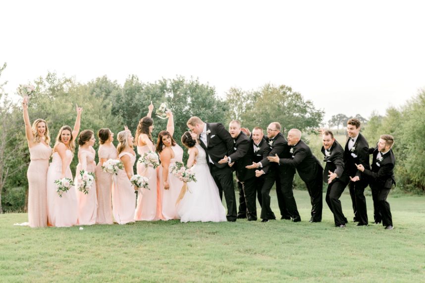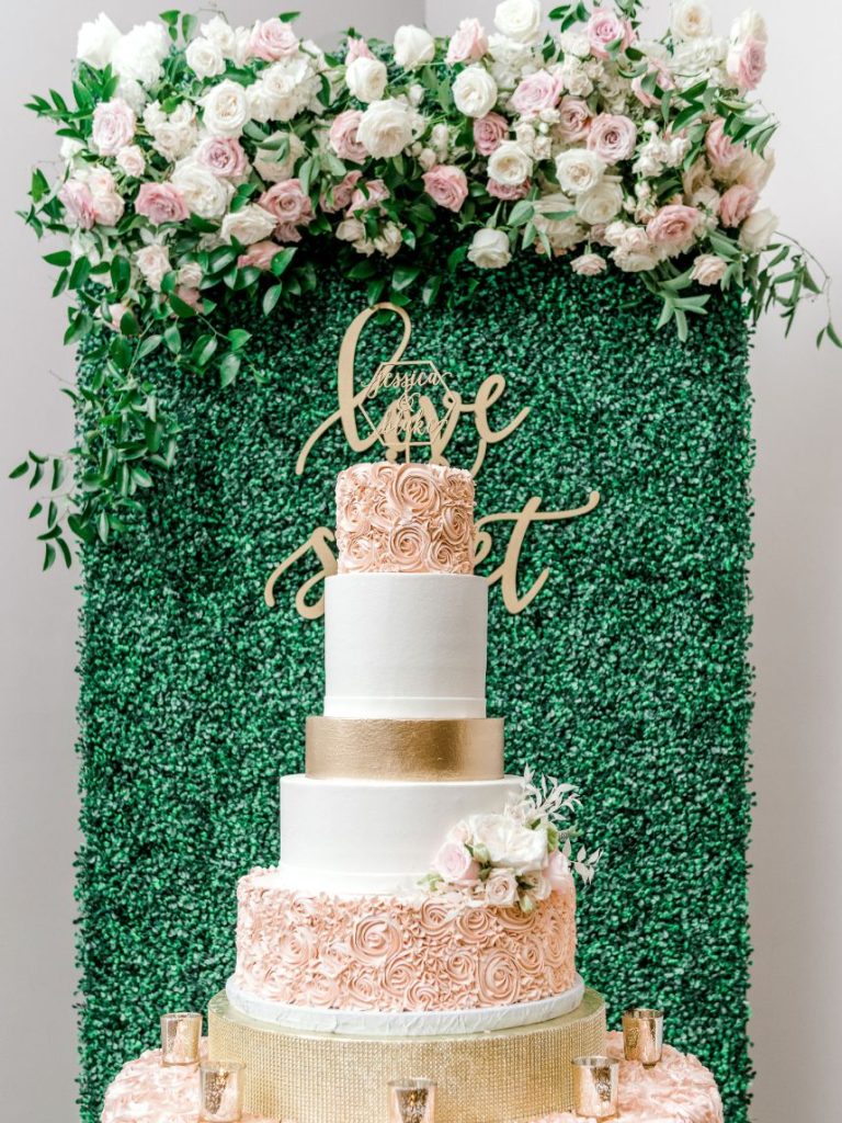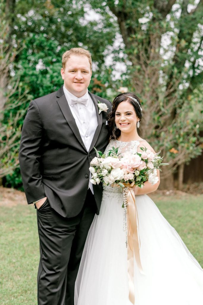 Jessica and Blake’s love story is what romantic comedy classics are made of complete with a long friendship turned beautiful romance when a waitress helped them both see what Blake had known all along — it was love! The Milestone – Aubrey Mansion was the perfect backdrop for their Southern chic wedding. From start to finish the day was overflowing with stunning blooms by Luxe Petals from the elegant altar to the show-stopping cake from Sugar Bee Sweets Bakery. One of our favorite touches were the sparkling pink linens from AM Linen Rentalsso dreamy! Keep scrolling to see what sweet moment the couple shared before their exit — you won’t want to miss it!
