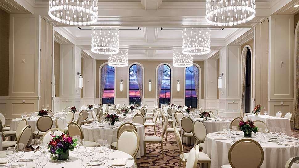 - A private ceremony in the hotel’s clock tower — adorned with flowers, of course,