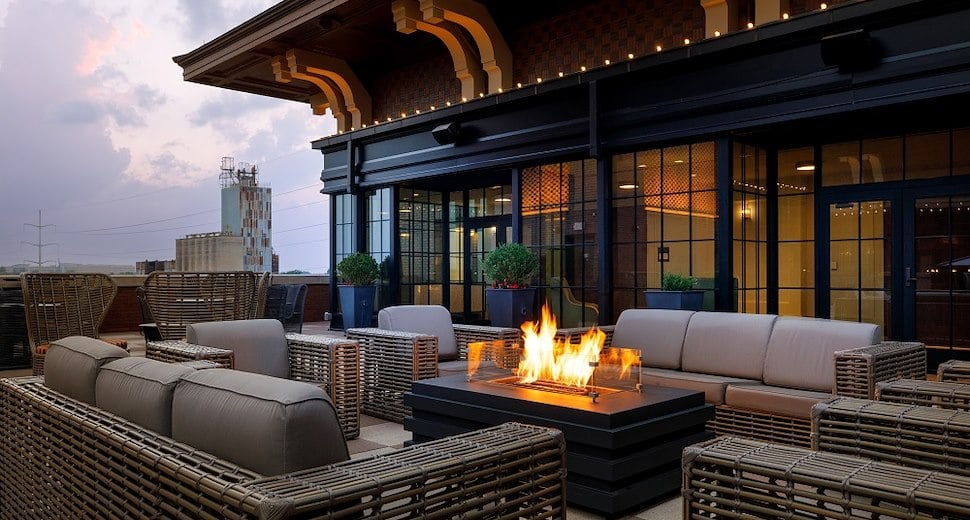 Perfect for a rehearsal dinner, the hotel’s Rioja rooftop terrace features scenic views from the fourth floor. Along with serving Spanish-style tapas, cocktails and wine, Rioja hosts a DJ every Friday and Saturday. The rooftop also offers plenty of cushy seating and a fire pit so you and your guests can stay cozy all night long.