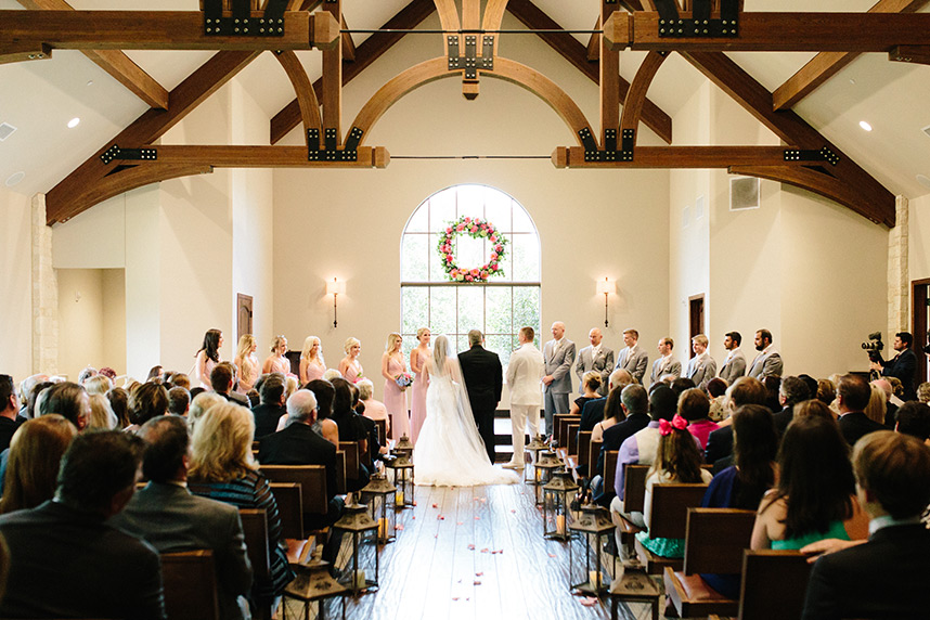 THE SETTING: Katherine and Ron booked The Laurel from seeing only an artist rendering. Even though it was a leap of faith, they loved that it was an all-in-one venue close to the city and airport, and that it reminded them of the Texas Hill Country. It has lots of wood, exposed beams, big windows and stone details to perfectly contrast with the feminine colors and floral. Katherine wanted rustic, but not country, and this was the perfect solution!