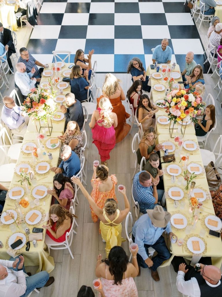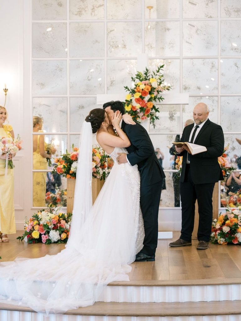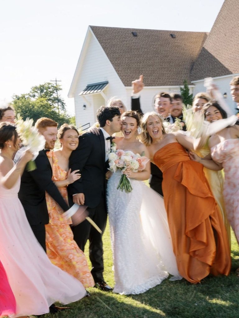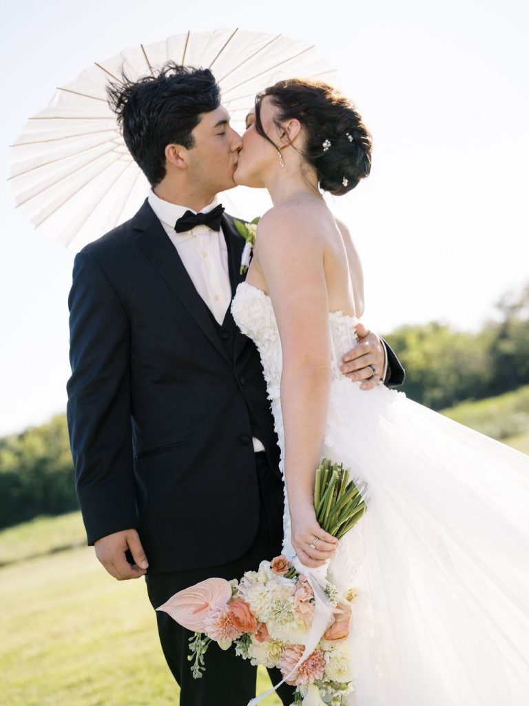 Katie and Jacob’s vibrant summer wedding at The Nest at Ruth Farms blended cheerful color with timeless romance in the North Texas countryside. The celebration featured bright florals in shades of coral, peach, and yellow that popped beautifully against the venue’s crisp white barn setting. Guests enjoyed refreshing drinks served by Shaker Bar & Bev Co. before heading into a joyful reception with friends and family. Sweet moments like the couple’s outdoor portraits beneath a parasol and their ceremony surrounded by blooms made the day feel effortlessly romantic. Every highlight was captured on film by Golden House Weddings, preserving a celebration full of color, personality, and love.