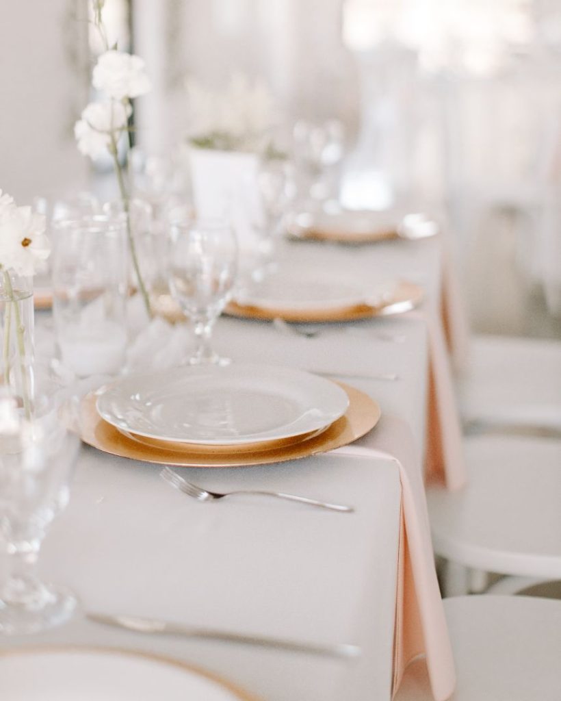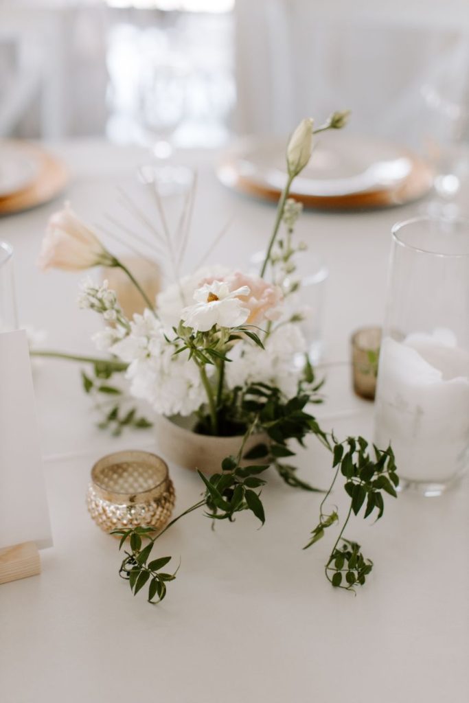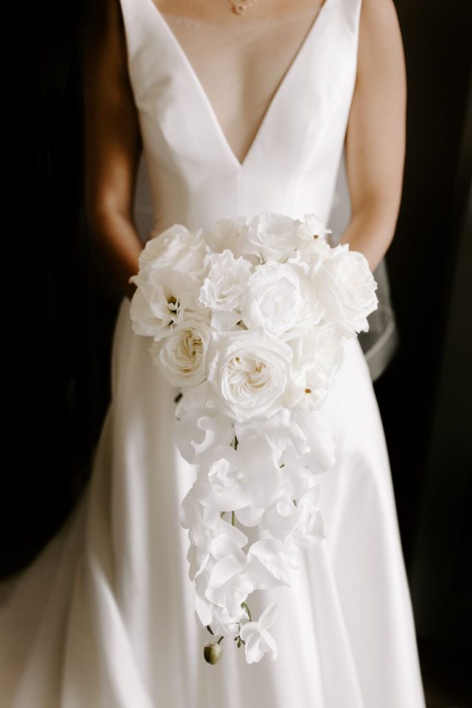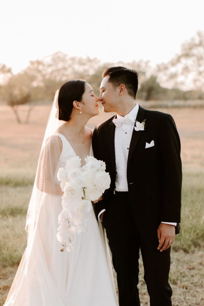 There’s something timeless about a wedding with clean lines, minimal details, and white blooms. Laurel and Brian’s big day at Davis & Grey Farms gives us just this with its seamless, minimal, and modern design. Laurel and Brian met their freshman year of high school, playing cello in their orchestra. However, it wasn’t until the end of their senior year that Brian asked Laurel on a date. The couple made their long-distance relationship during college work, which led to Brian proposing to Laurel in his parent’s backyard. Laurel said, “I was completely surprised. I distinctly remember telling Brian the night before the proposal (b/c I thought we were just going on a date) to NOT propose to me. But he did anyway, and I, of course, said yes!”