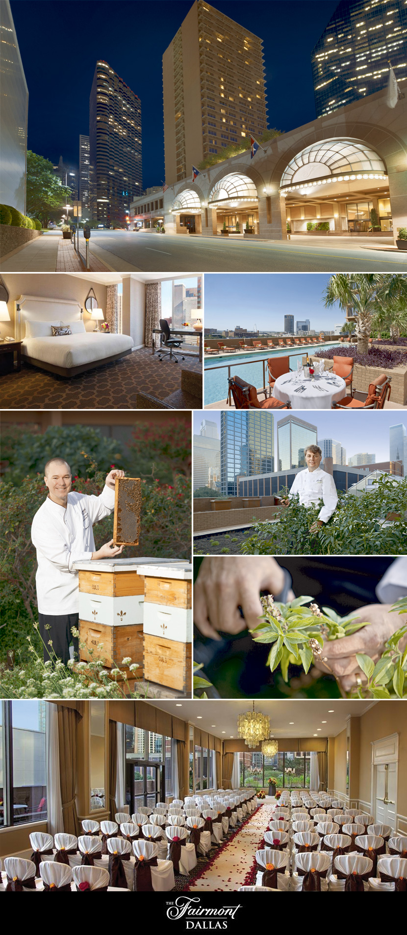 Combining hospitality and elegance with that special Texas flair, the newly-renovated Fairmont Hotel Dallas has everything you need to create your complete wedding experience. This luxury hotel is ideally located in the heart of the downtown Dallas Arts District surrounded by a wide array of Dallas fine dining restaurants, shopping, arts and entertainment. No matter where your imagination takes you, from a dramatic ceremony and sit-down banquet for a thousand, to an intimate afternoon reception, bridal shower, brunch or rehearsal dinner, the Fairmont will assist you in designing a seamless event. They offer a number of impressive ballrooms and intimate indoor and outdoor locations that are ideal for the wedding of your dreams, and you will be dazzled by the mouth-watering presentations of their award-winning culinary team. The Pyramid Restaurant and Bar at the Fairmont features a fresh-market approach through the sourcing of local and regional products, the largest hotel/restaurant herb and vegetable garden in the area and a myriad of house made menu items and signature cocktails like their fabulous mojitos. The beautiful rooftop garden expertly tended to by Yvon Lambert, Food and Beverage Director, includes North American beehives, and the honey harvested from these hives is used in a variety of savory dishes prepared by executive Chef Brian Armstrong. Yum! For more information visit their website, or call 214.720.2020 to book your event today! Cheers!