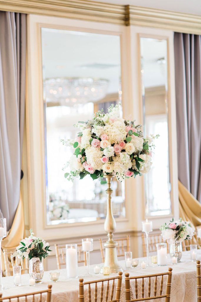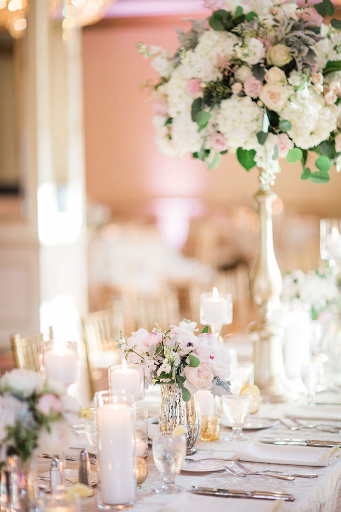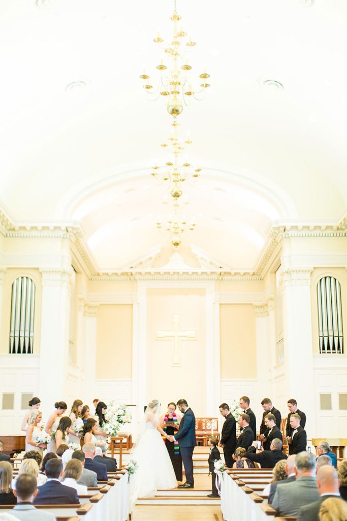 THE SETTING: The Perkins Chapel at SMU created a formal yet romantic setting for the couple to share their vows. The room’s champagne uplighting paired with the glow of a hundred candles created a dreamy ambiance that was felt by all. Their reception was held at the Warwick Melrose Hotel. The fanciful feeling from the chapel was carried over to the reception hall by adding soft flowers and warm candles. The long head table was decorated with candles of varying heights while guest tables were topped with a mixture of tall centerpieces and flower arrangements.