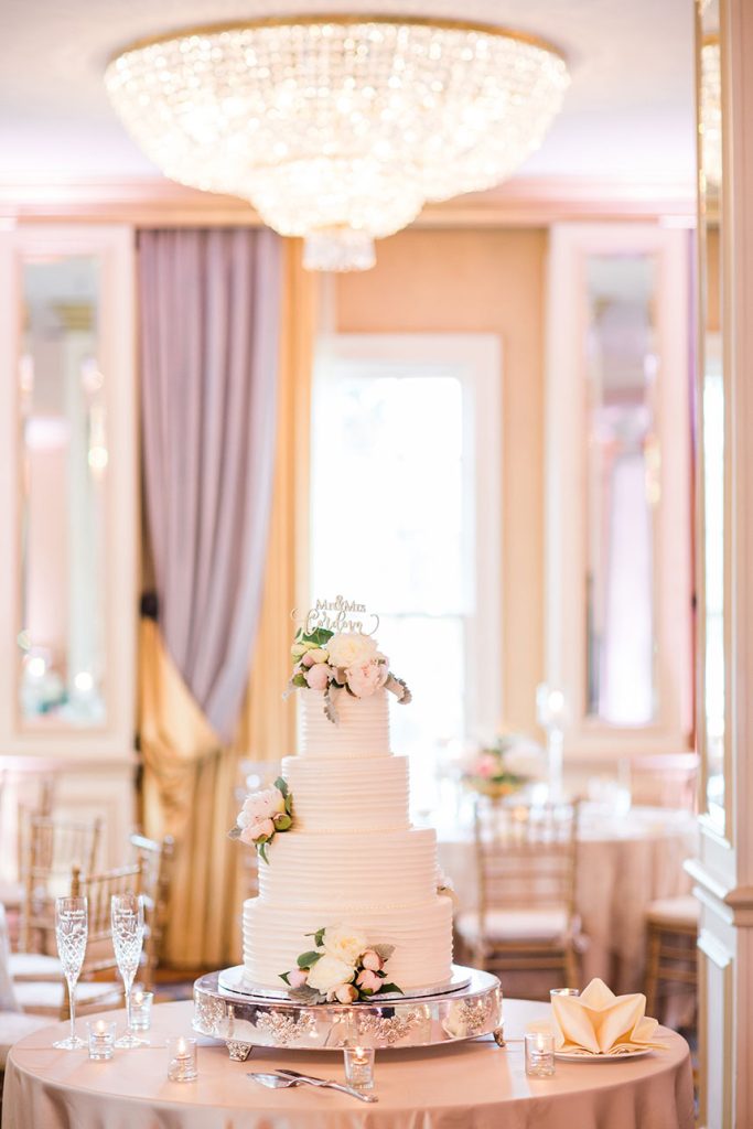 SAVORY SWEETS: Meredith’s wedding cake was a simple four-tiered cake, coated in textured buttercream frosting, decorated with fresh flowers and topped with a custom cake-topper. Because Nicholas is a huge soccer fan, the groom’s cake featured the Bayern Munich logo and was covered in quilted fondant designed to resemble the Allianz Arena in Germany. The Cake Guys did a great job in creating these mouth-watering decadent desserts!