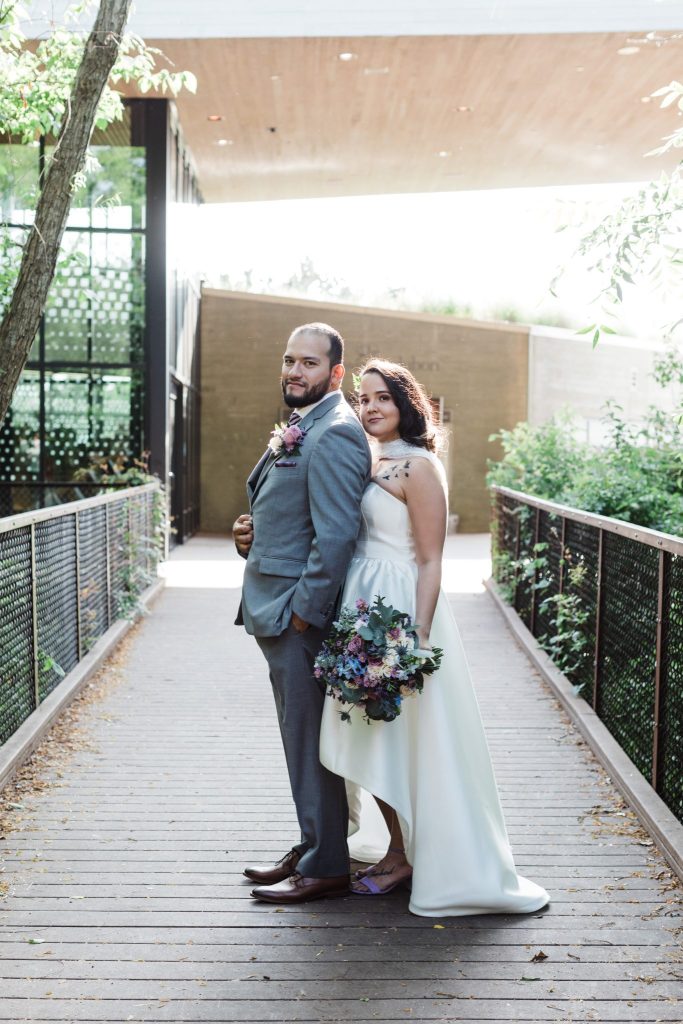 Trinity River Audubon Center provided the perfect outdoor backdrop for Lola and Armando’s organic lavender wedding. Located outside of Dallas, Trinity River Audubon is home to the largest urban hardwood forest in the United States. An ideal place to say “I do” for an outdoorsy couple. Armando and Lola met through mutual friends, and on a December night, Armando popped the question in Kylde Warren Park. Lola described the proposal as “the most dreamy night.”