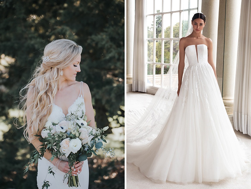 Perfecting your bridal style for the big day is ideal, and nothing complements your look more than pairing your wedding hairstyle with your bridal gown’s neckline! We asked four North Texas beauty experts which of their favorite bridal hairstyles looked best with the the trendiest necklines. Plus, we chose to match those looks with gowns from local bridal shops, so you know exactly where to search to make your dream wedding look come true! Keep reading to see all the different takes on bridal style these North Texas wedding vendors have put together!