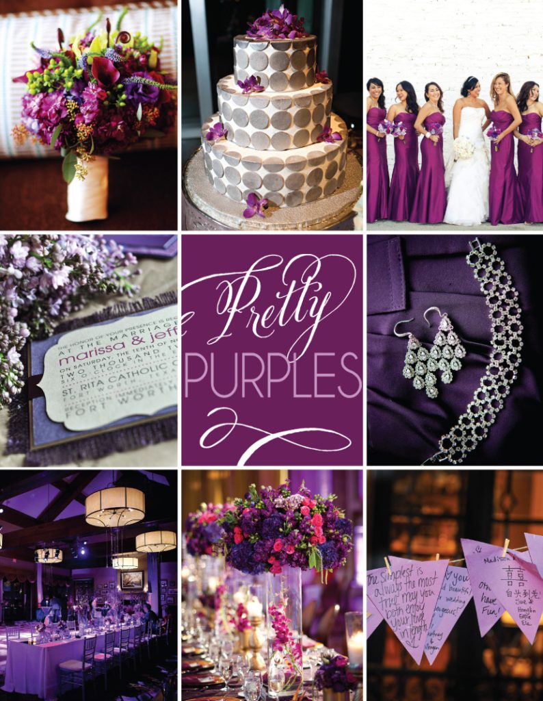 What’s not to love about pretty purples? Rich purple hues paired with shimmering metallics create a palette fit for royalty! From lush wedding flowers to dreamy full length bridesmaid dresses, we can’t help but love all of these plum details.