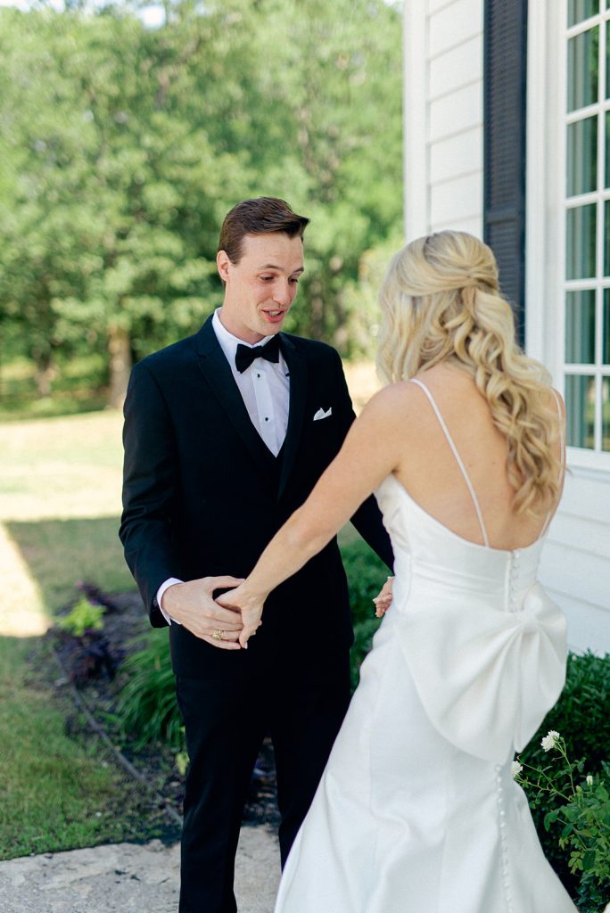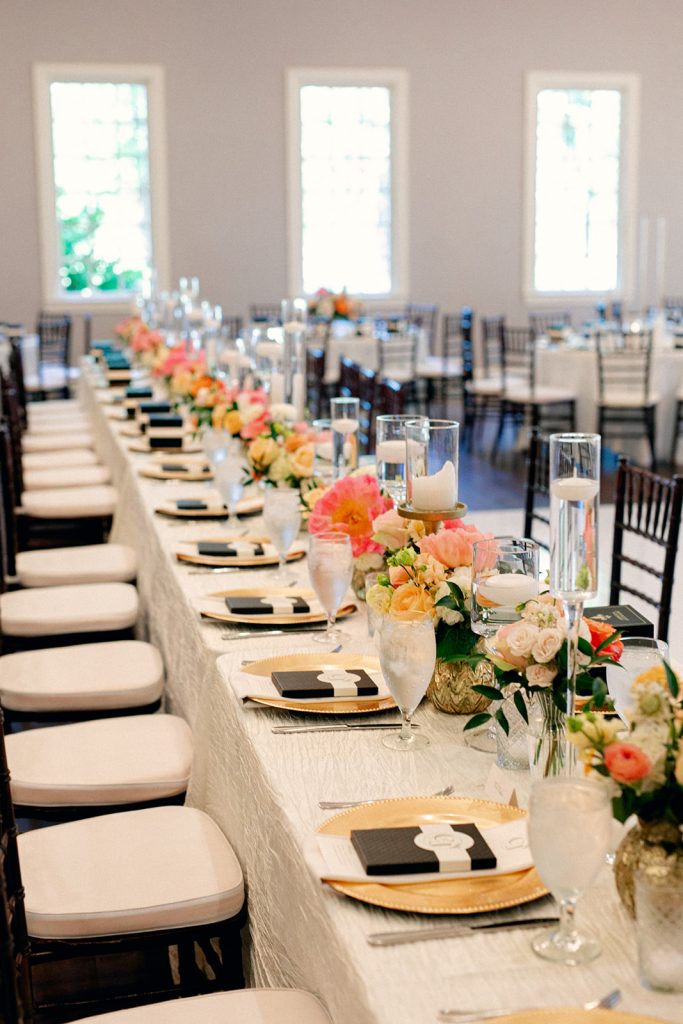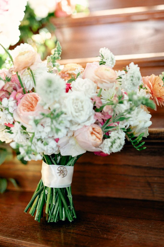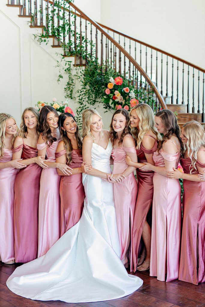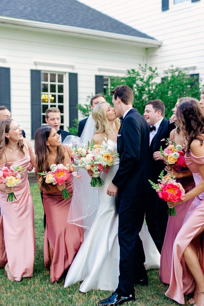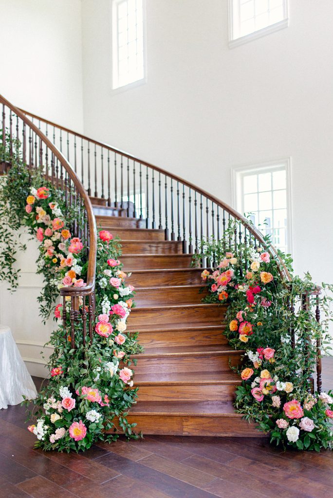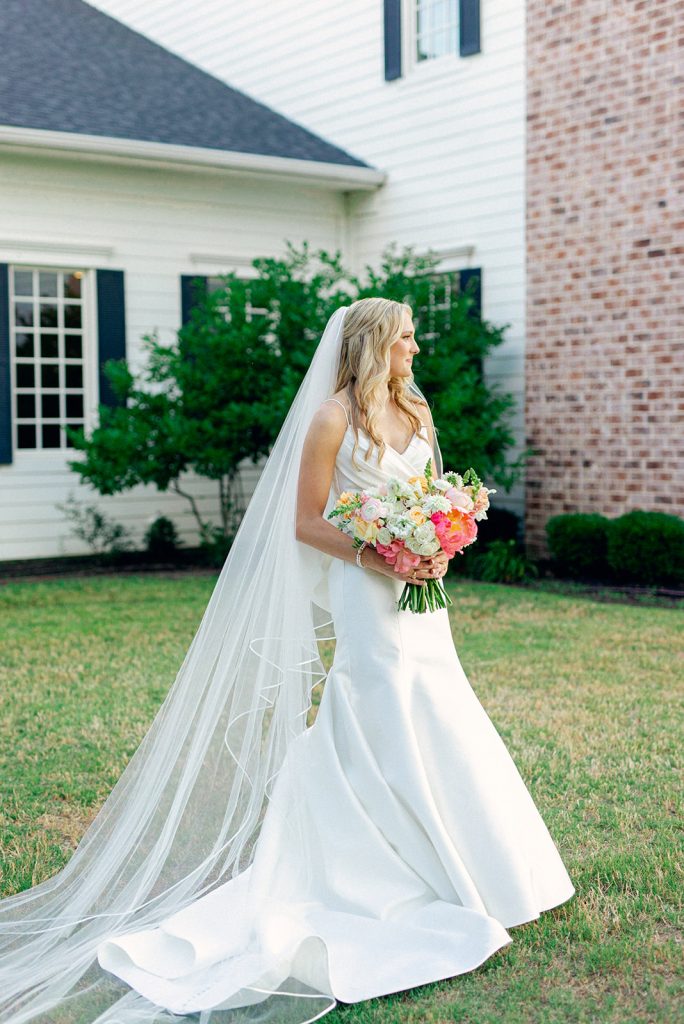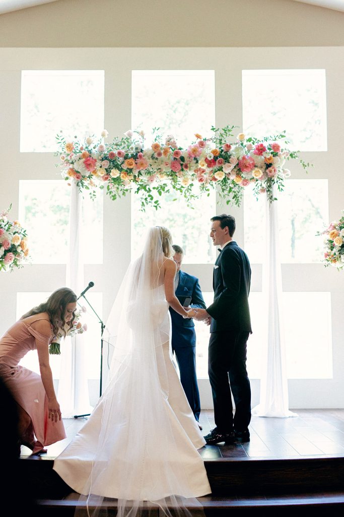Carolyn and Jeff celebrated their love in a vibrant and elegant wedding filled with personal touches and colorful details. The ceremony took place at The Milestone – Aubrey, adorned with a stunning floral arch of coral, blush, and white blooms, creating the perfect backdrop for their vows.
