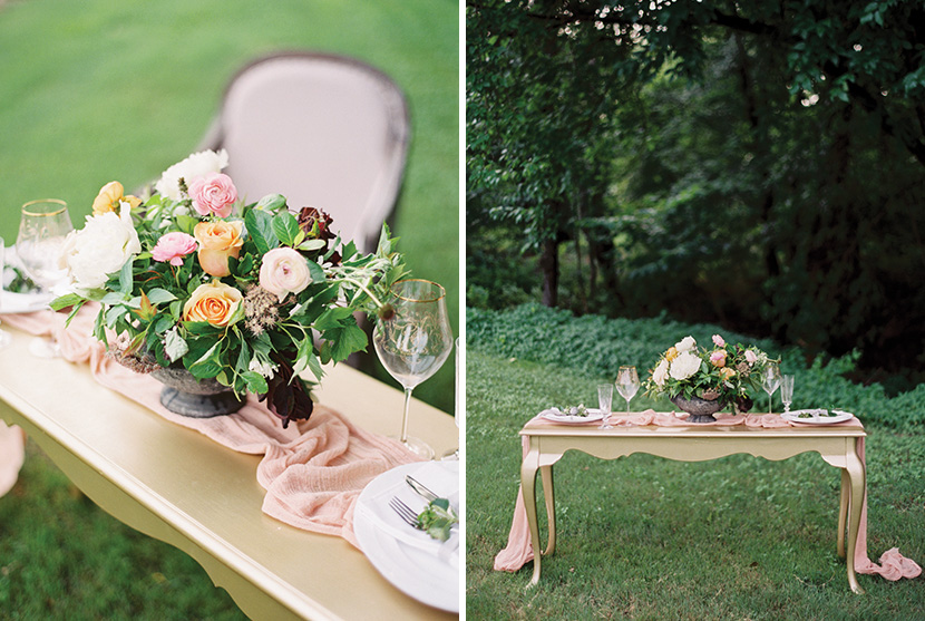 Oh Deery Floral, Erin Blair (hair & makeup), Catherine Deane (dress), Anthropologie (plates, napkins, glassware), Silk & Willow (table runner)