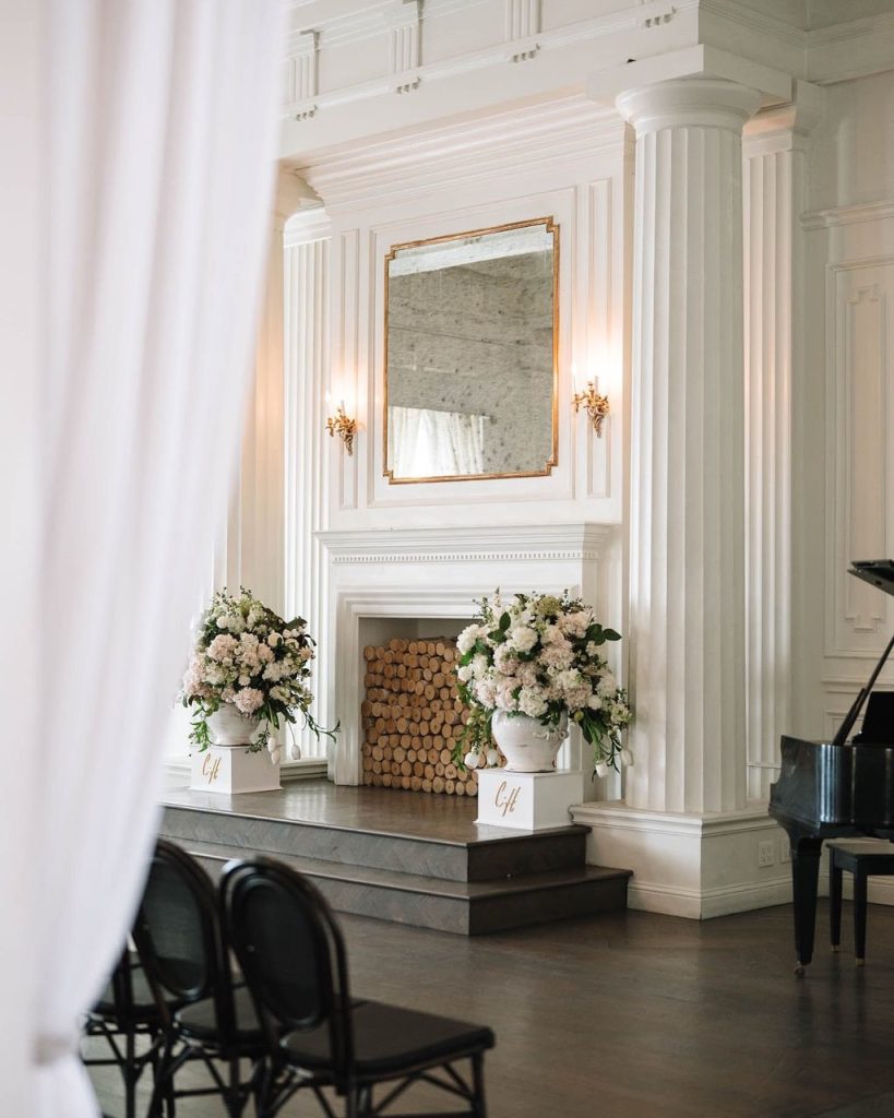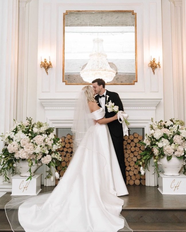 This elegant ballroom wedding was the perfect blend of timeless romance and refined detail. The couple exchanged vows surrounded by lush white florals before celebrating with an intimate candlelit reception that featured sophisticated tablescapes and warm, glowing ambiance. Captured beautifully by Golden House Weddings, every moment felt effortlessly classic, from the bride’s structured gown to the cozy newlywed portraits by the fireplace. Guests enjoyed an unforgettable dining experience by Vestals Catering, while the bride’s flawless beauty look by Grand Slam Glam completed the day with polished perfection. It was a celebration full of heartfelt moments, classic style, and romantic charm.