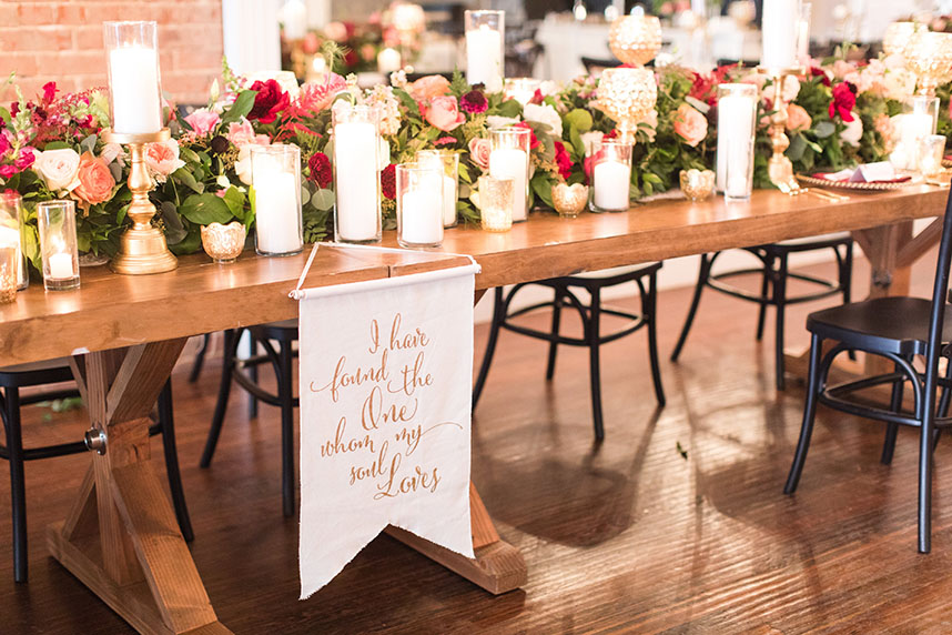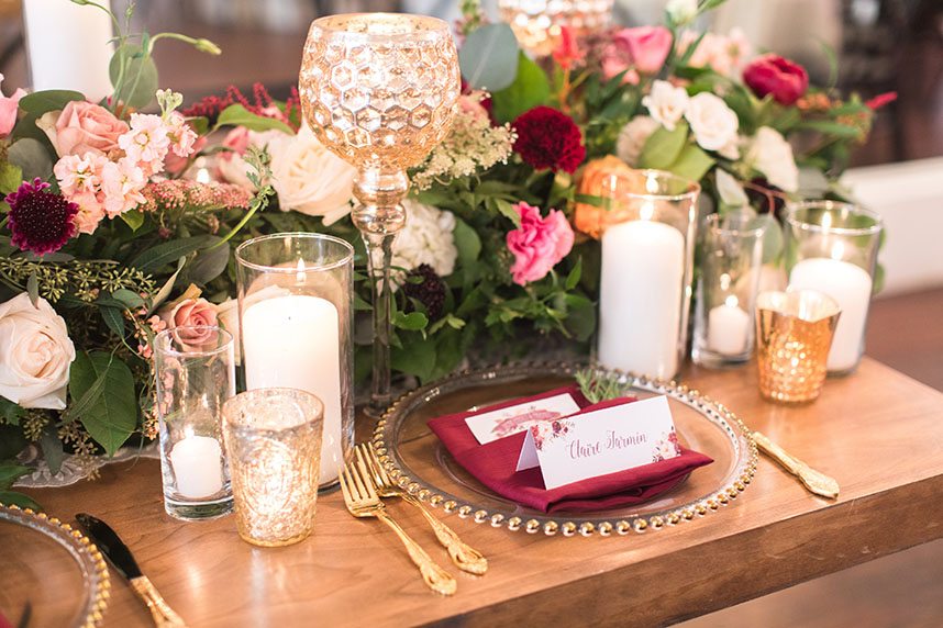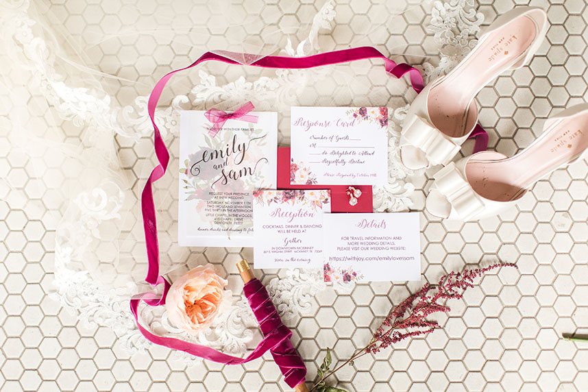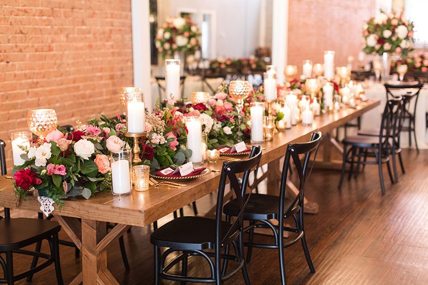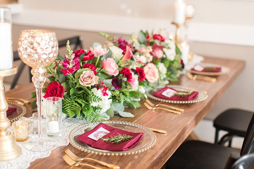 With beautiful flowers all around by Petals Couture and romantic music playing in the background, Emily and Sam’s wedding was all that they hoped it would be. Photos were taken by Meggie Taylor Photography and she was able to capture every moment of their romantic ruby red wedding. Check out our site to see more!