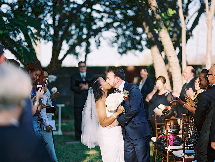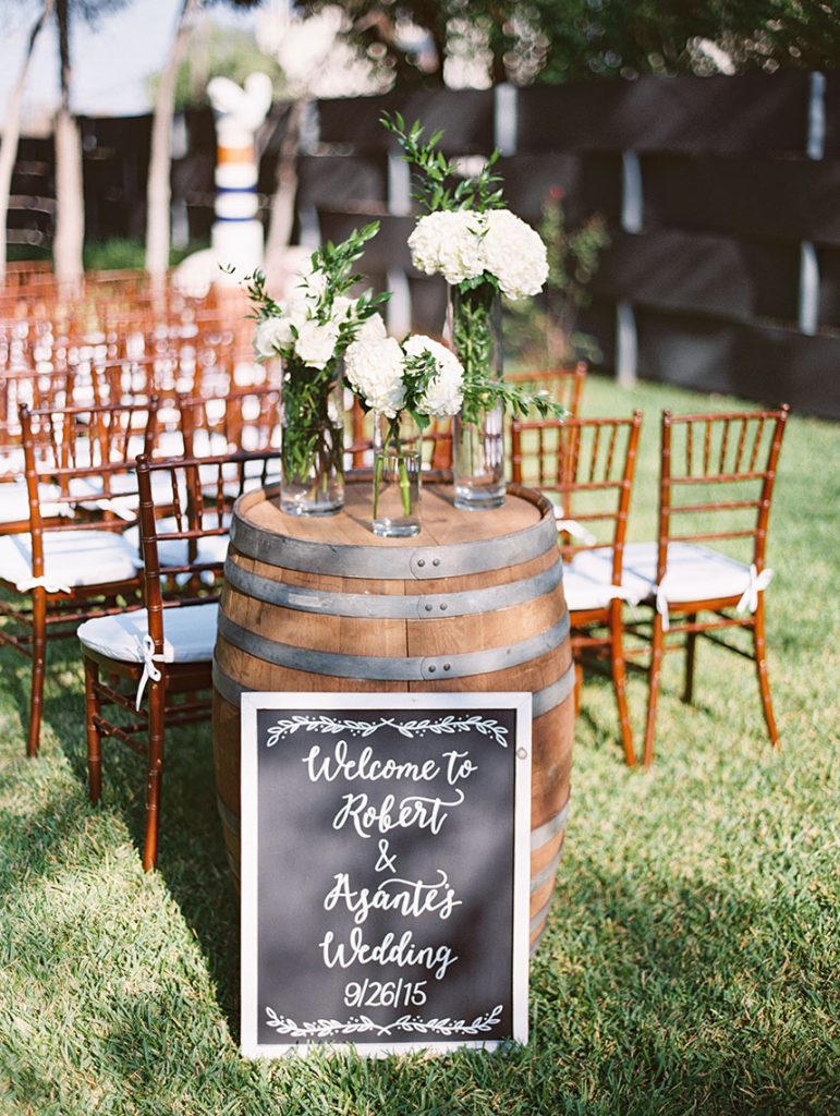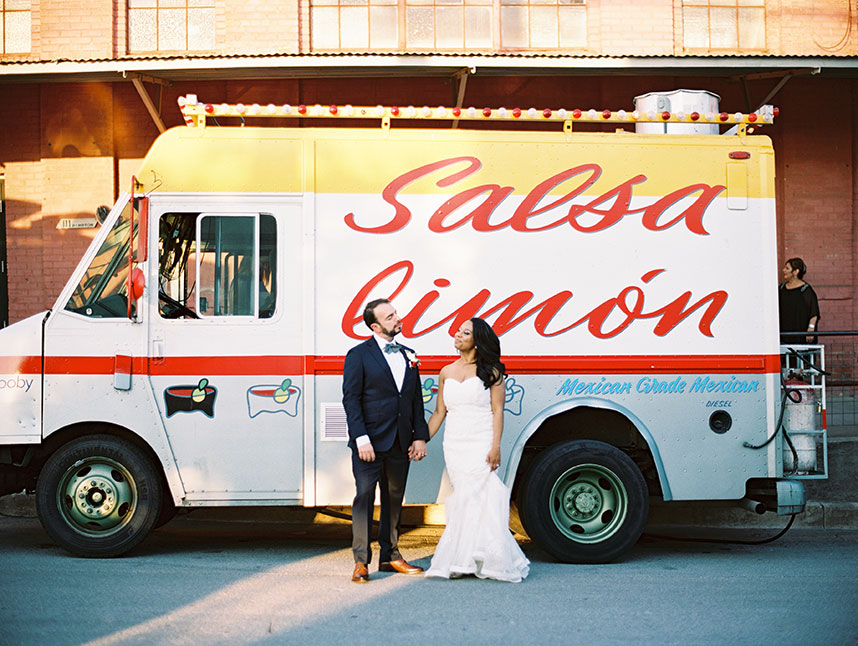 SETTING THE SCENE: Asante and Robert wanted their wedding to have a Texas-meets-New York theme, so they went with a neutral palette of white and brown with accents of silver and grey. The theme of their wedding was simple, rustic and modern. But above all fun! They had a popcorn bar, s’mores bar, lawn games and food trucks so guests could have a great time while attending the wedding.