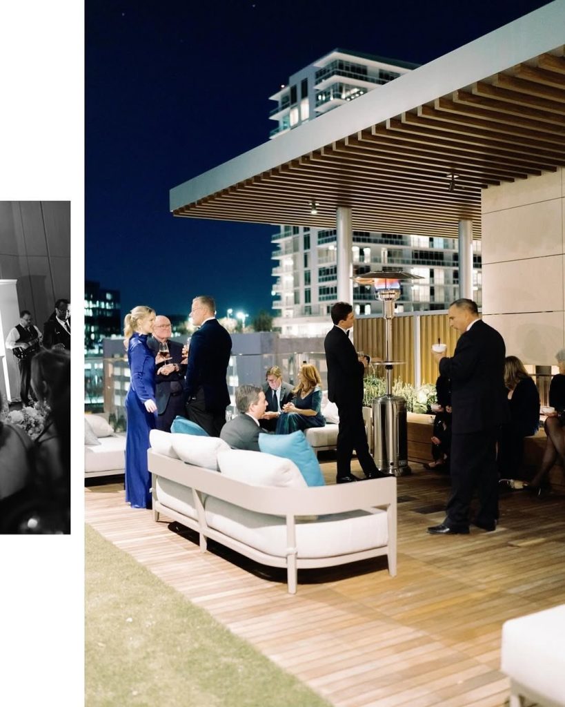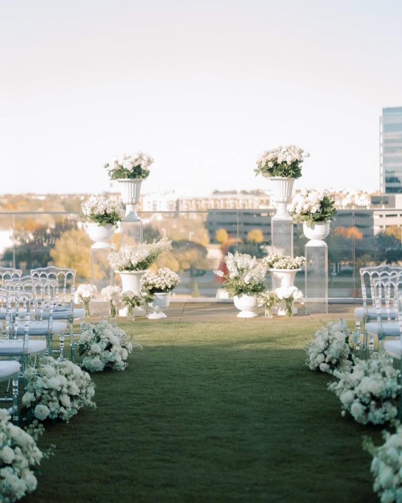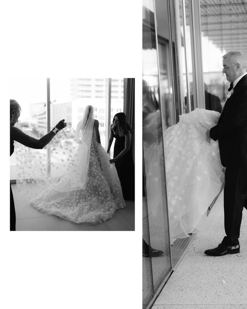 Molly and Sam’s wedding at Hall Park Hotel was the epitome of modern elegance with a golden December glow. Set on the rooftop with sweeping views, their ceremony featured lush white florals and romantic cityscape backdrops. Molly stunned in a textured floral gown, while chic black attire and espresso martinis brought a sleek sophistication to the celebration. From sunset portraits to festive winter touches, every detail was equal parts timeless and personal. This stylish Frisco wedding was one to remember.