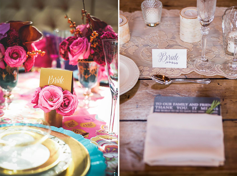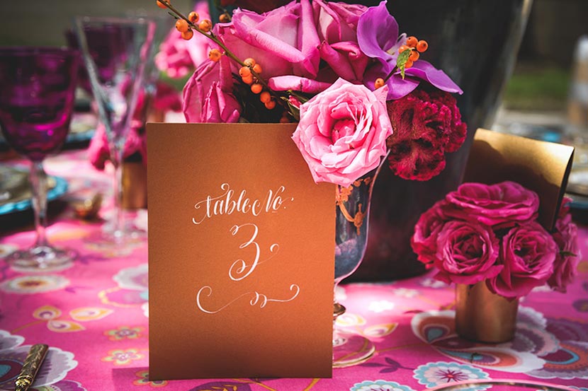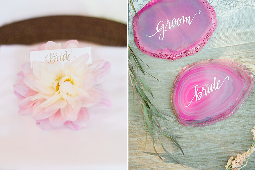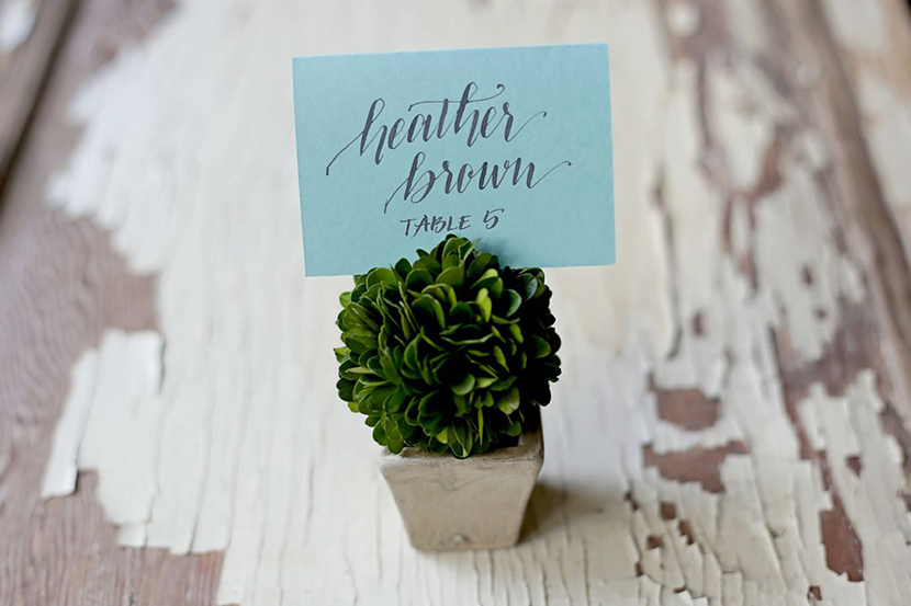 Calligraphy and invitation design studio, Design Roots, is not limited to strictly invitations! Think outside the box for your wedding details to incorporate calligraphy into multiple aspects! We’re fans of Design Roots‘ place card and table number designs – the perfect finishing touch to any table design. See more of her work online!