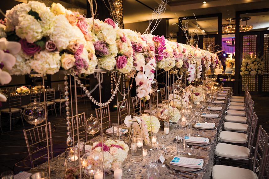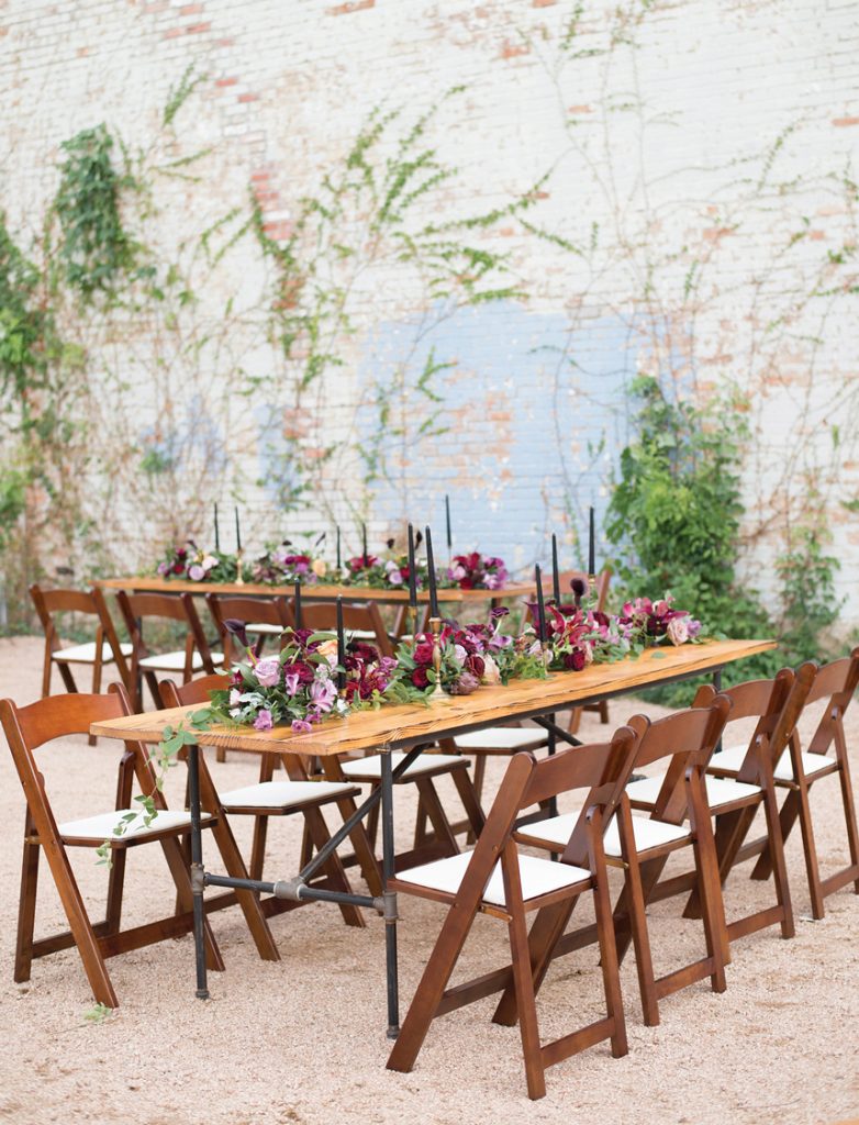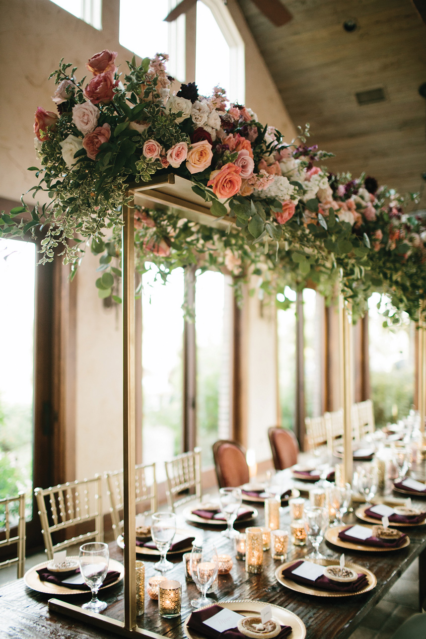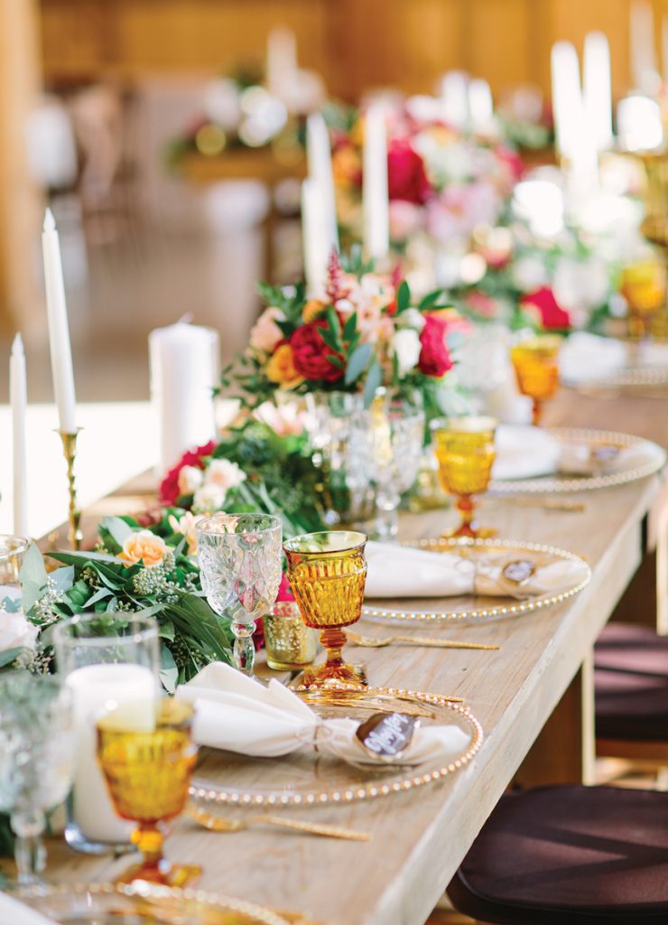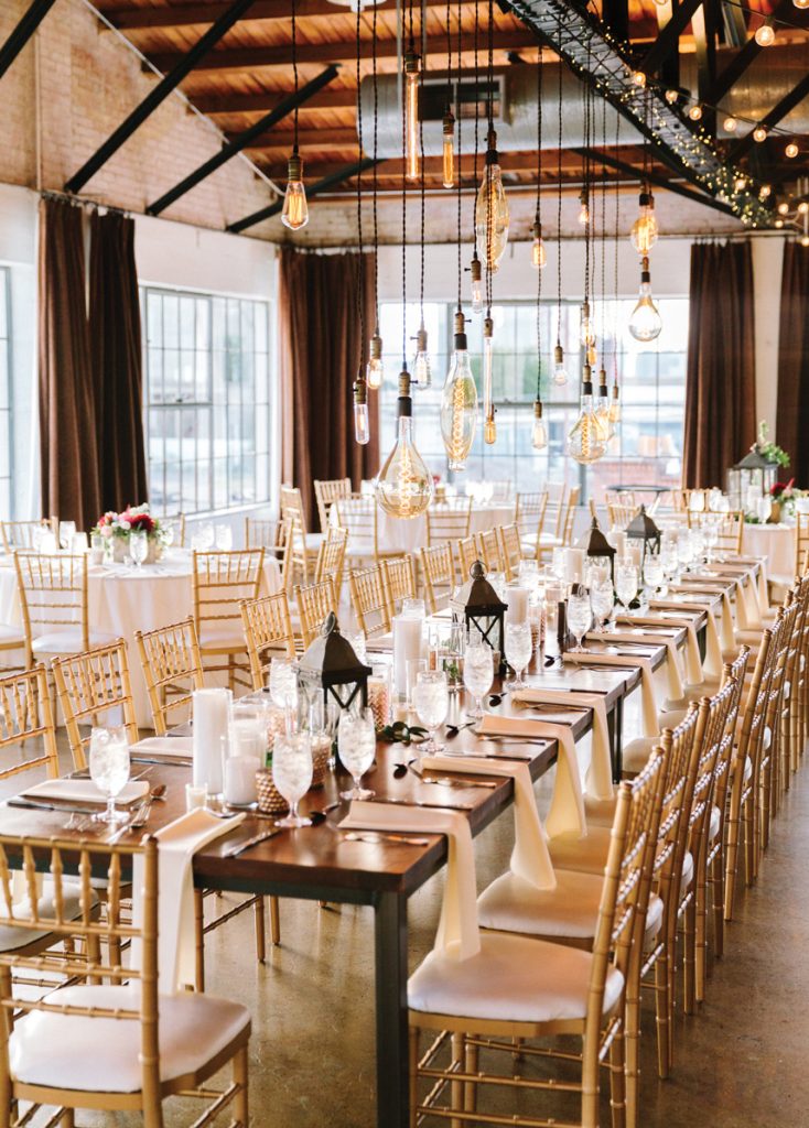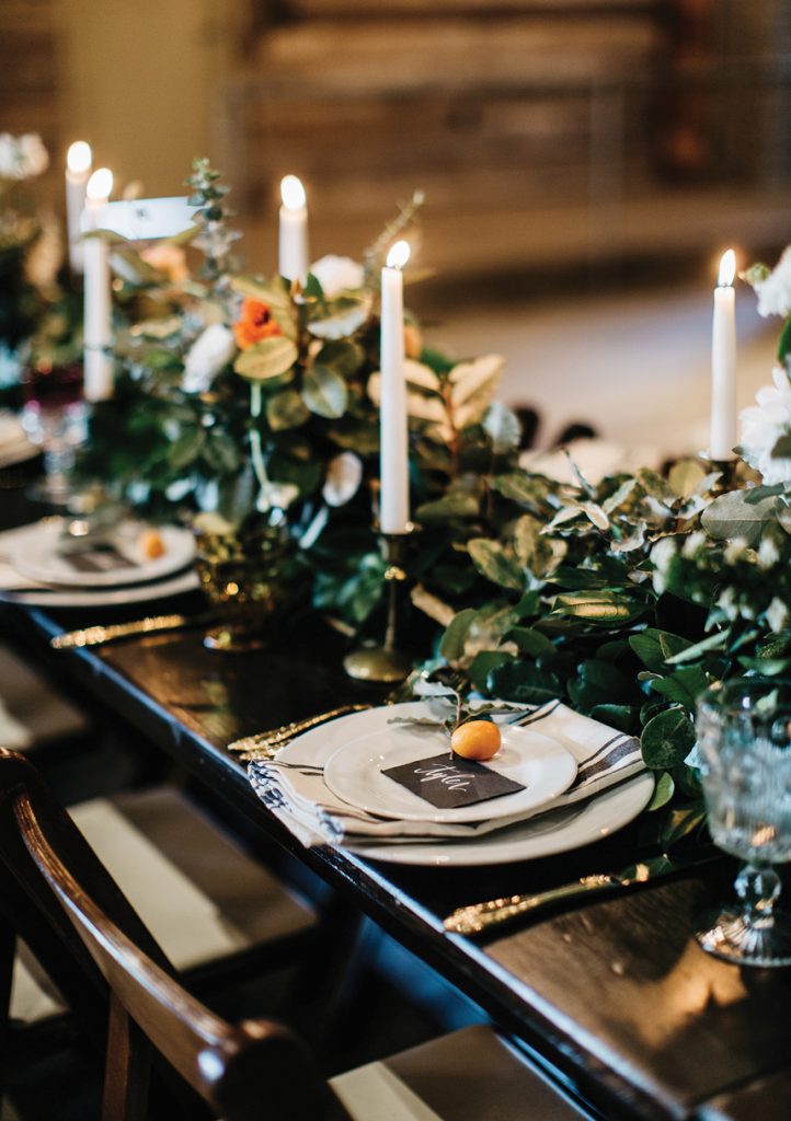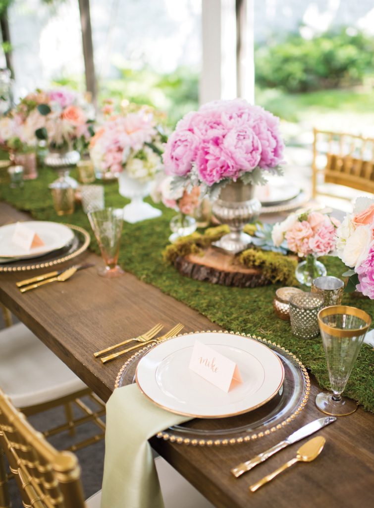 Today it’s all about your tablescape! We’ve rounded up some of our favorite table decor images straight from the weddings in our Spring/Summer issue to inspire weddings of any style or budget. You’ll find everything from over-the-top arrangements to organic greenery table runners and even industrial lighting designs below. Happy planning!