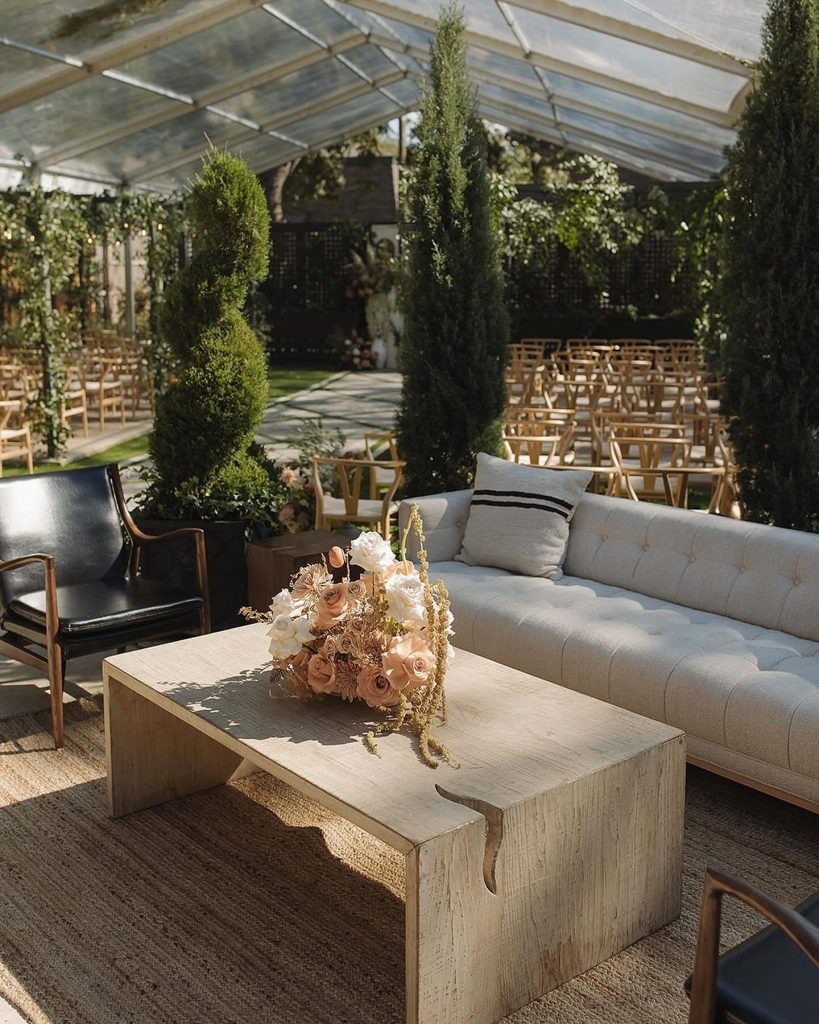 With Loot Rentals bringing a touch of refined elegance through their stunning decor and furniture pieces, this wedding shines with natural beauty and sophisticated design. The earthy color palette, adorned with gold accents and a charming mix of rustic and modern elements, blends seamlessly into the enchanting ceremony space, framed by lush greenery and delicate florals.