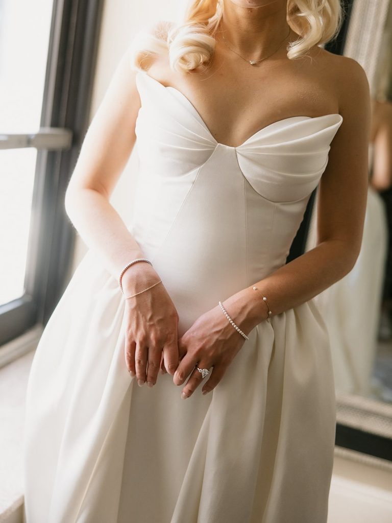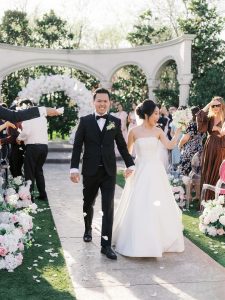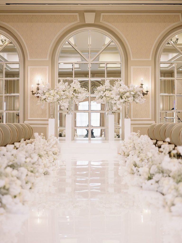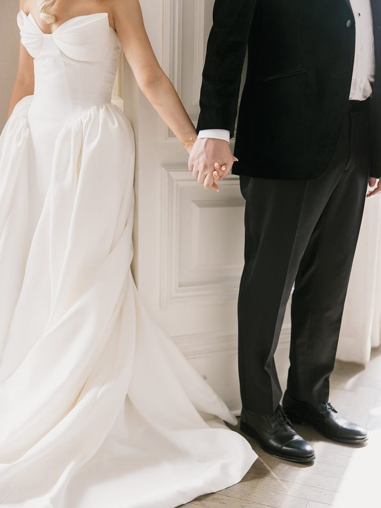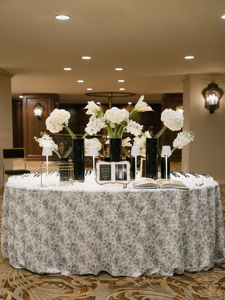 This black-tie wedding at The Adolphus Hotel was a stunning blend of classic elegance and modern sophistication. The bride wore a sleek strapless gown for the ceremony and changed into a sparkling number for the reception. A chic palette of white, black, and gold set the tone for a refined celebration, with towering florals and candlelit tables transforming the ballroom. From heartfelt moments to a packed dance floor, every detail reflected timeless glamour and pure joy.