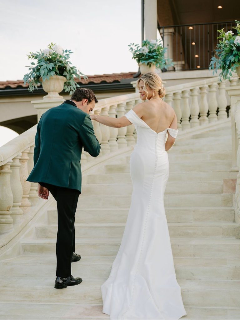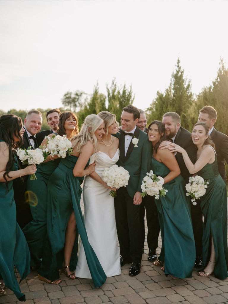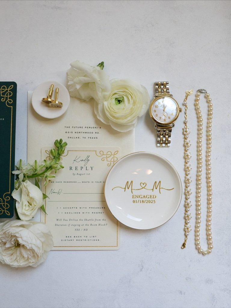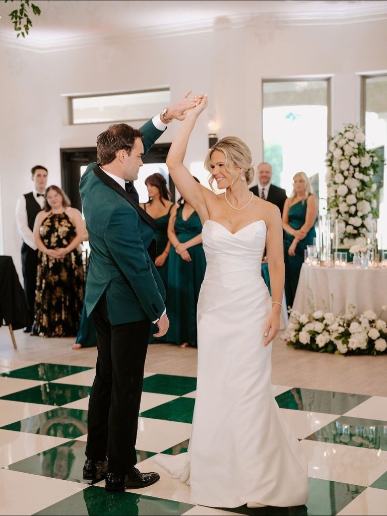 This Texas wedding brought romantic garden style to life with lush white blooms, cascading greenery, and refined gold accents. The couple shared “I do” beneath a flower-covered altar before celebrating among candlelit tables layered with elegant textures. From the bride’s classic gown to the groom’s rich green tux, every detail felt elevated yet personal. A vintage photo bus and heartfelt touches added personality and charm, making the day as joyful as it was beautiful.