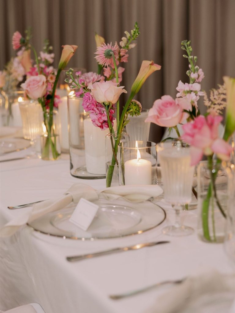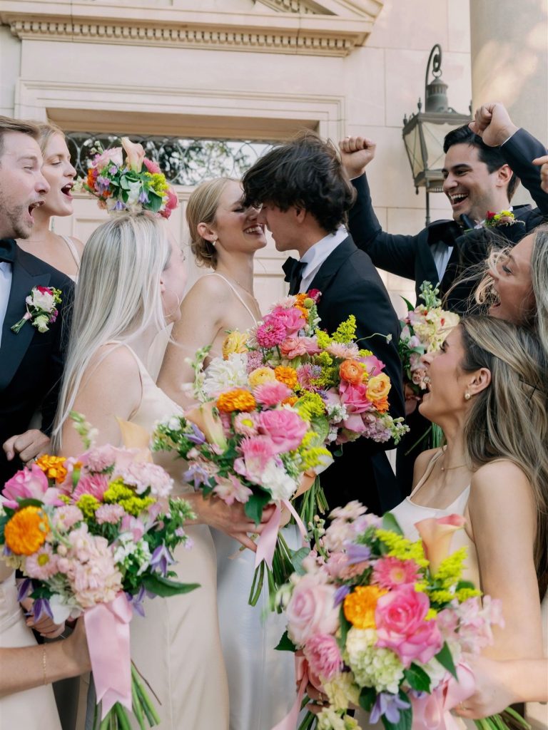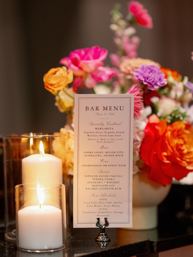 Grace and Seth’s wedding day beautifully blended classic elegance with vibrant, modern color. Their ceremony was full of light and emotion, followed by a reception glowing with candlelight, soft neutrals, and delicate floral details. Bright, cheerful blooms added a fresh burst of personality to their timeless aesthetic, creating an atmosphere that felt both refined and joyfully romantic. From the bridal party’s dreamy walk to the aisle to the couple’s sweet cake-cutting moment, every detail reflected a celebration full of love, laughter, and unforgettable style. Perfect inspiration for couples planning a chic, colorful wedding.