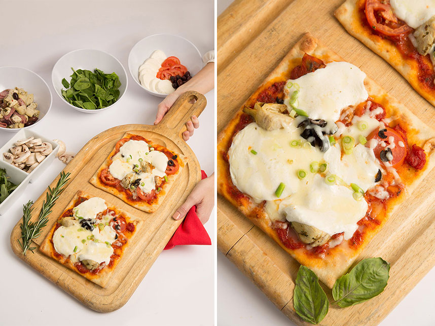 Interactive Station : Flatbread pizzas with custom toppings from Culinary Art Catering.