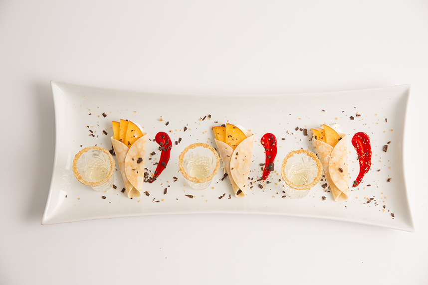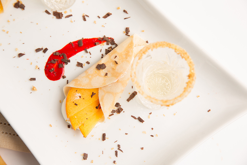 Brunch : Peach mimosa crepes with blood orange coolis from Gil’s Elegant Catering.