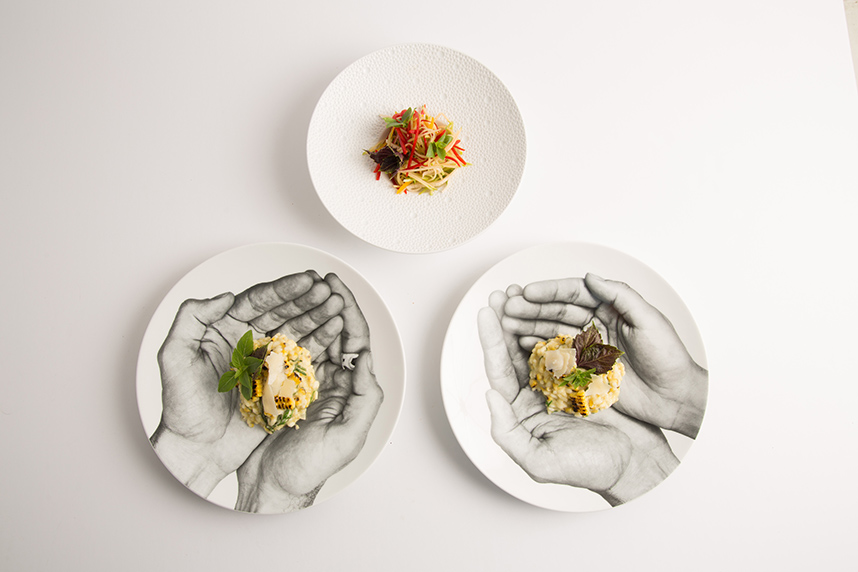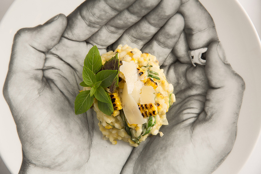 Vegetarian : Charred sweet corn risotto with granny smith apple slaw from Kent Rathbun Catering.